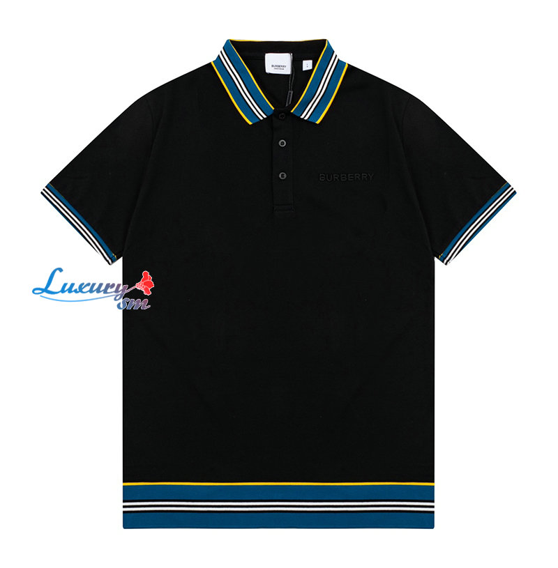 BURBERRY-04016 버버리 블랙 스트라이프 장식 폴로 티셔츠 남성용