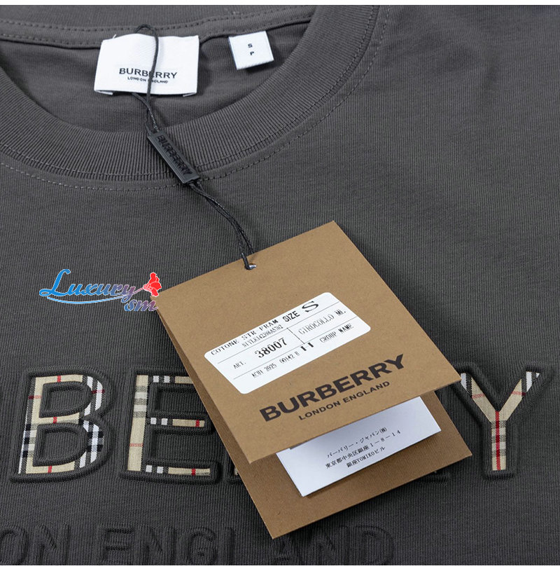 BURBERRY-04018 버버리 그레이 아플리케 장식 티셔츠 남여공용