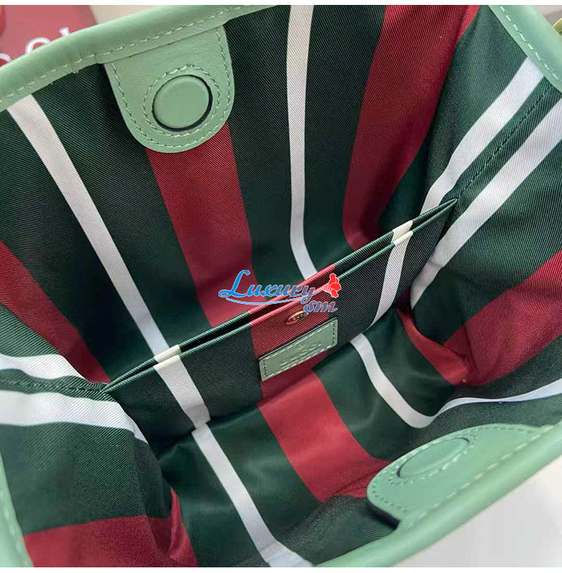 이 미니 버킷백은 웹(Web) 코튼 안감, 내부 컴
