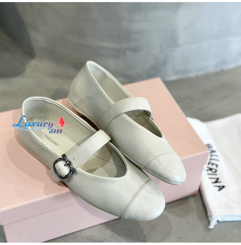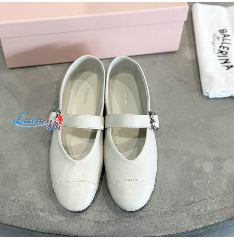 Ferragamo-01J947 페라가모 화이트 간치니 발레 플랫