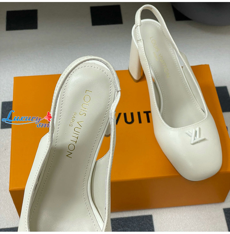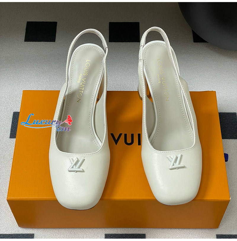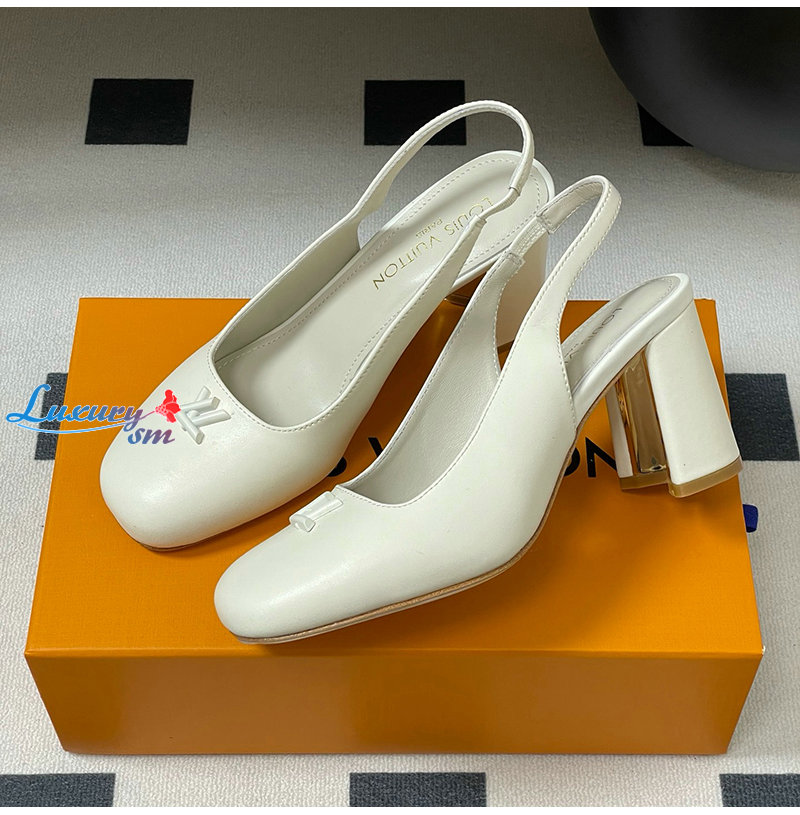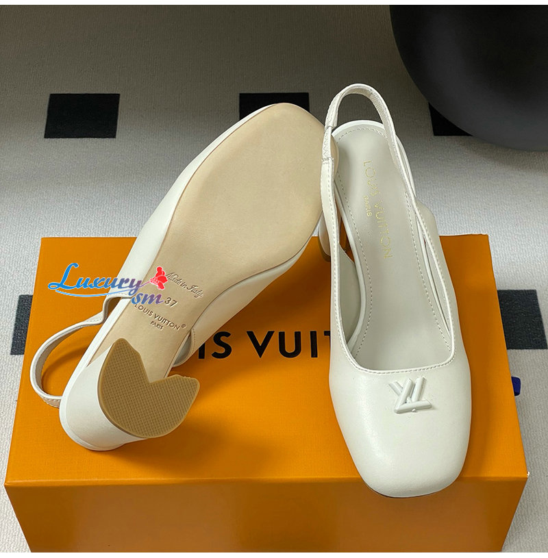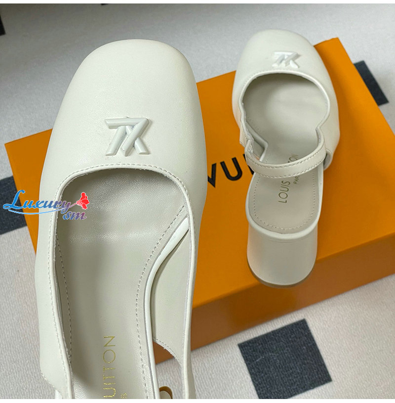 LOUIS VUITTON-1AGUH0 루이비통 화이트 송아지 가죽 스윙 슬링백 펌프스