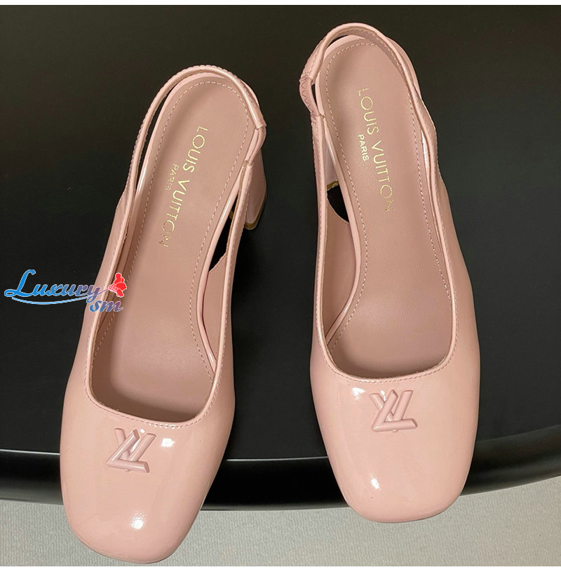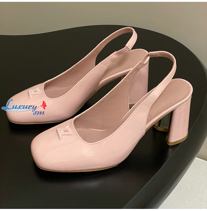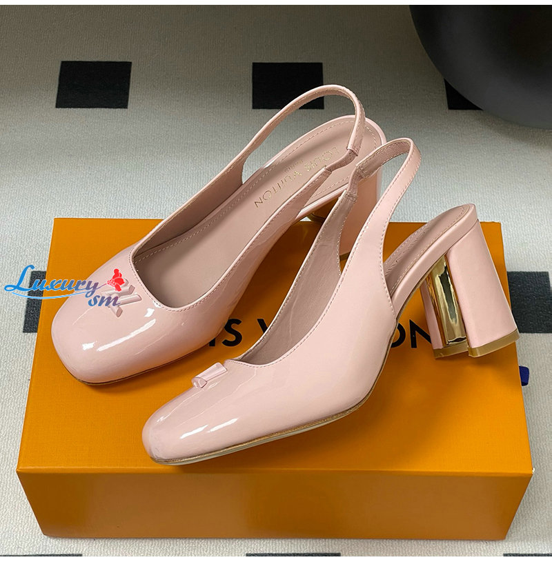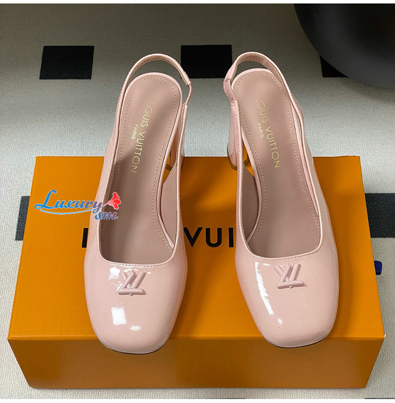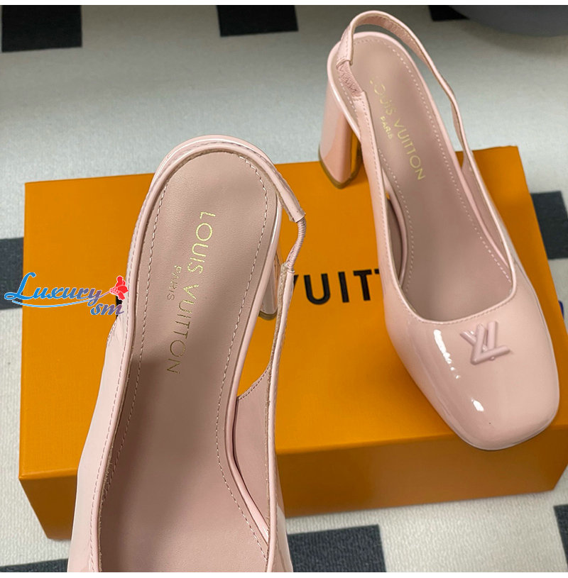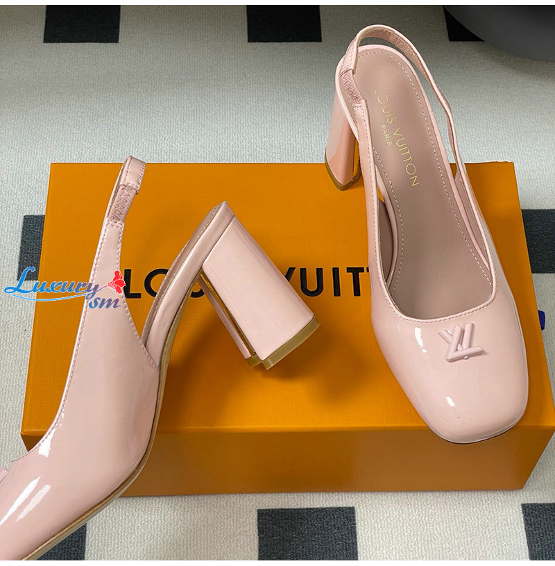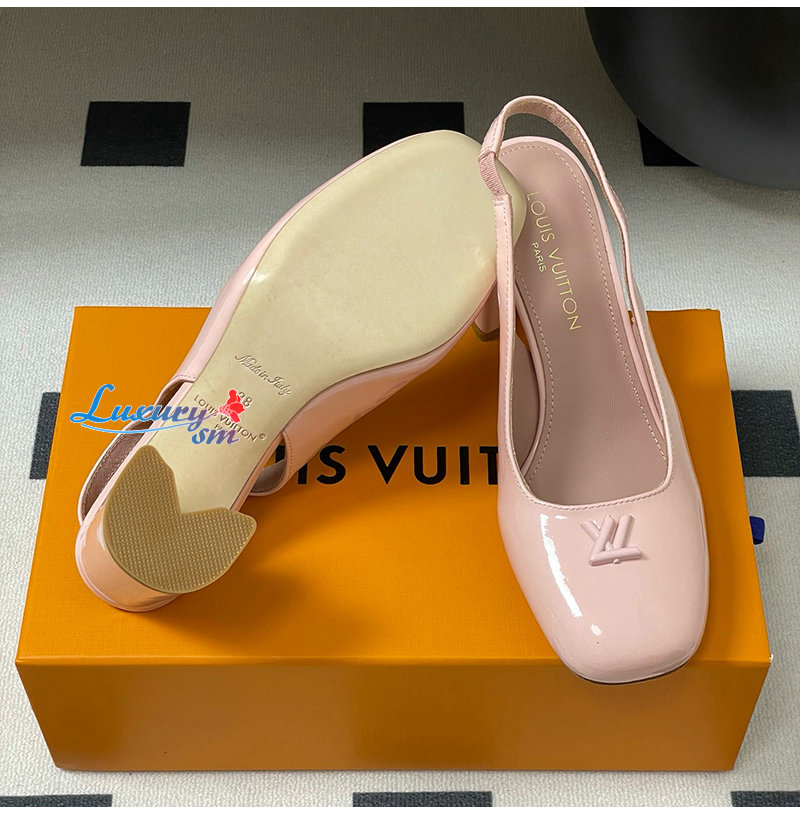 LOUIS VUITTON-1AGUH0 루이비통 핑크 페이턴트 송아지 가죽 스윙 슬링백 펌프스