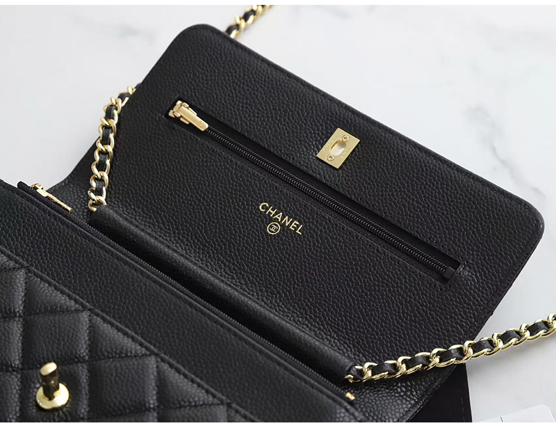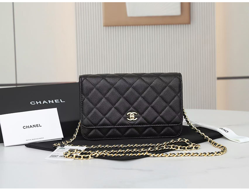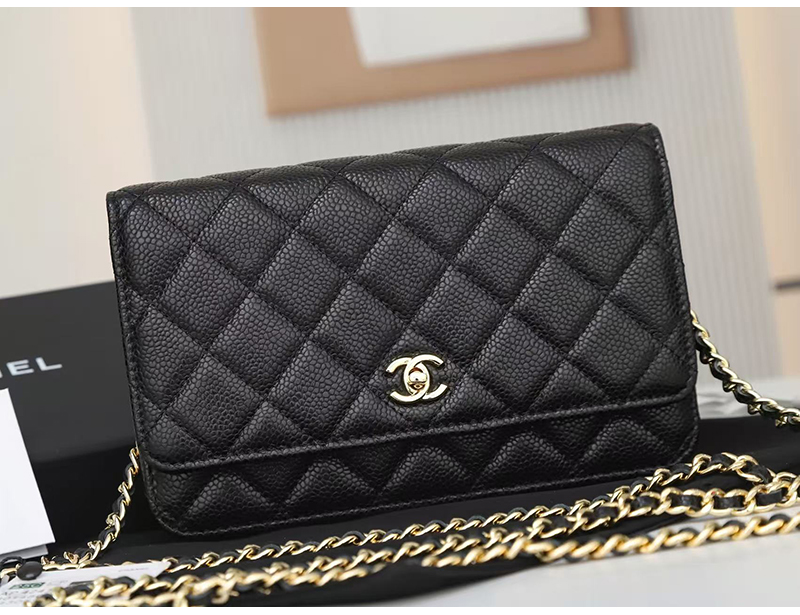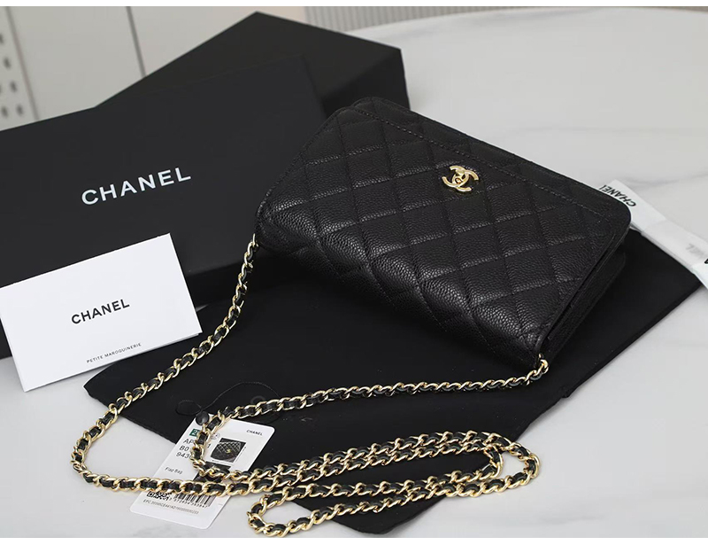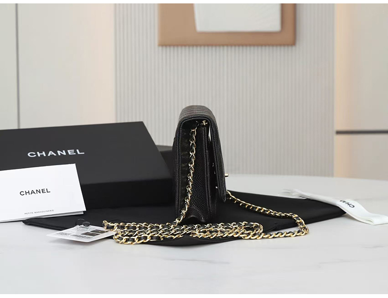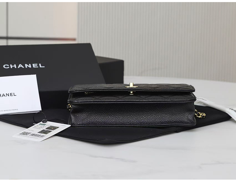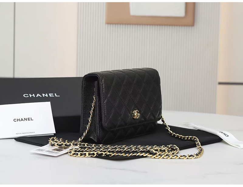 [스페셜오더]CHANEL-AP0250 2025년 신상 샤넬 블랙 금장 캐비어 턴락 월렛 온 체인 WOC