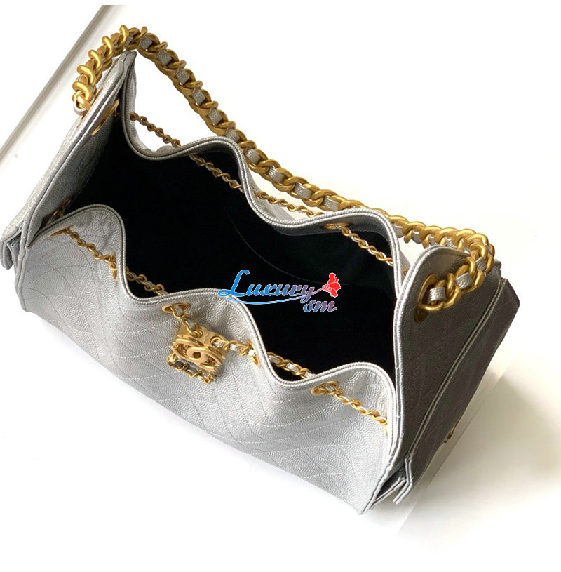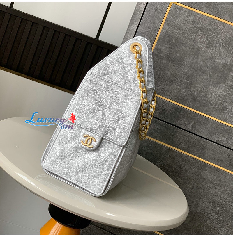 CHANEL-AS5293 샤넬 실버 캐비어 가죽 CHANEL
