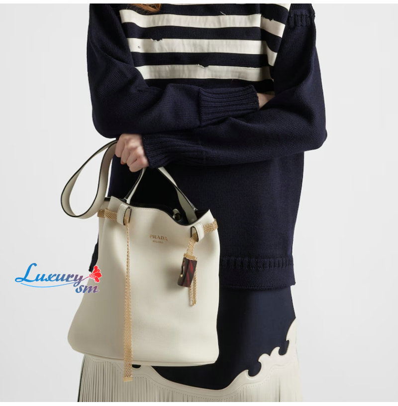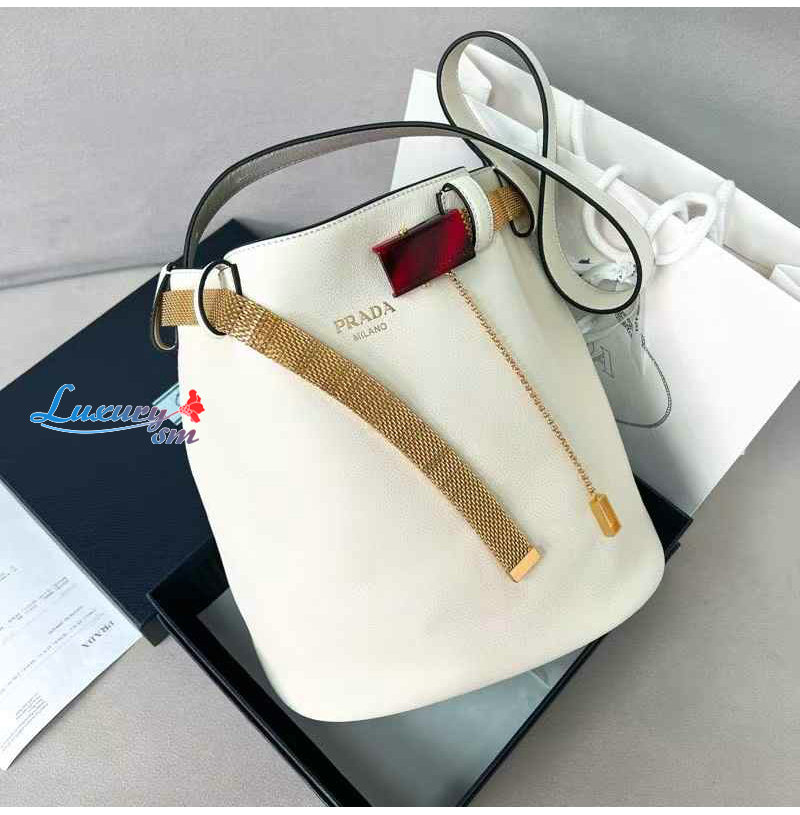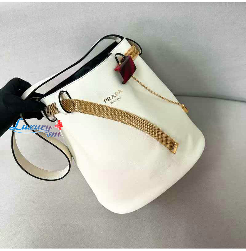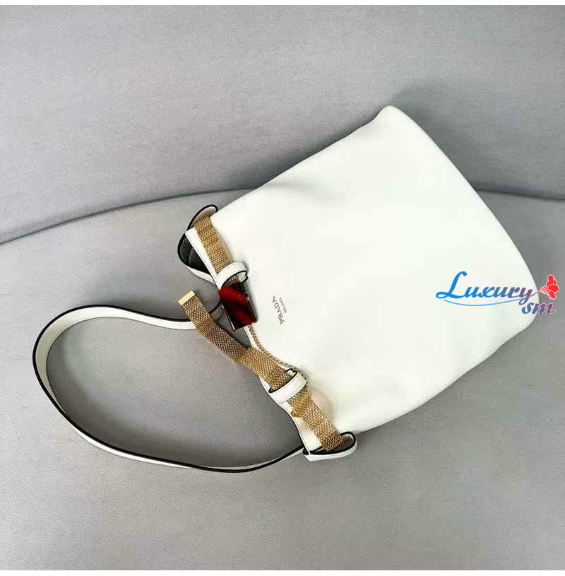 [스페셜오더]PRADA-1BE085 프라다 화이트 주얼리 벨트 버클 버킷 백