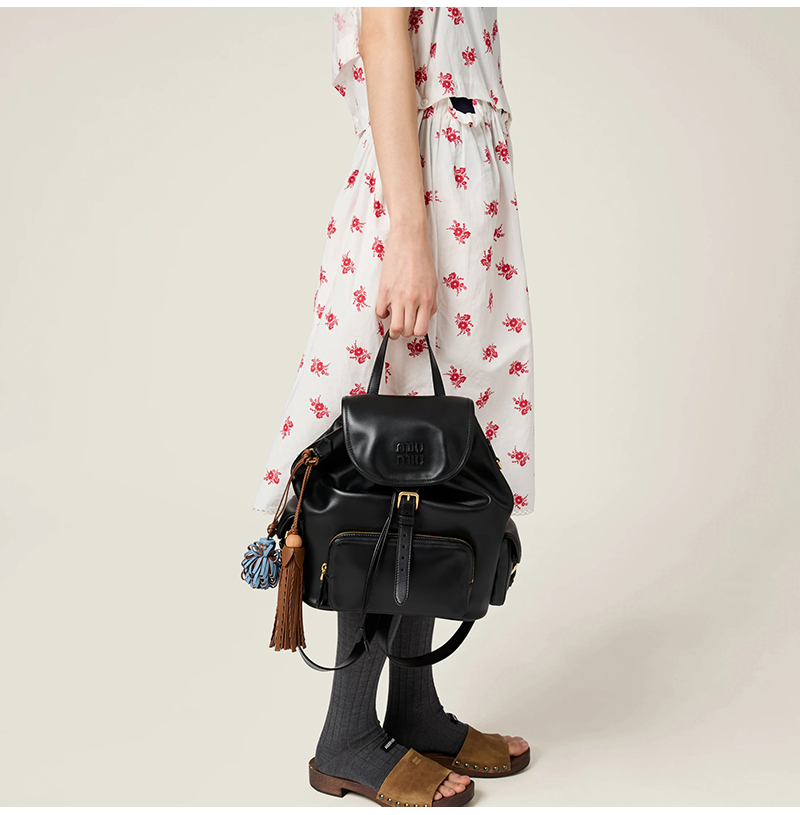 [스페셜오더]MIUMIU-5BZ042 미우미우 블랙 송아지 가죽 백팩 미듐