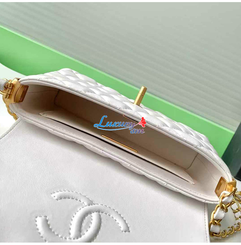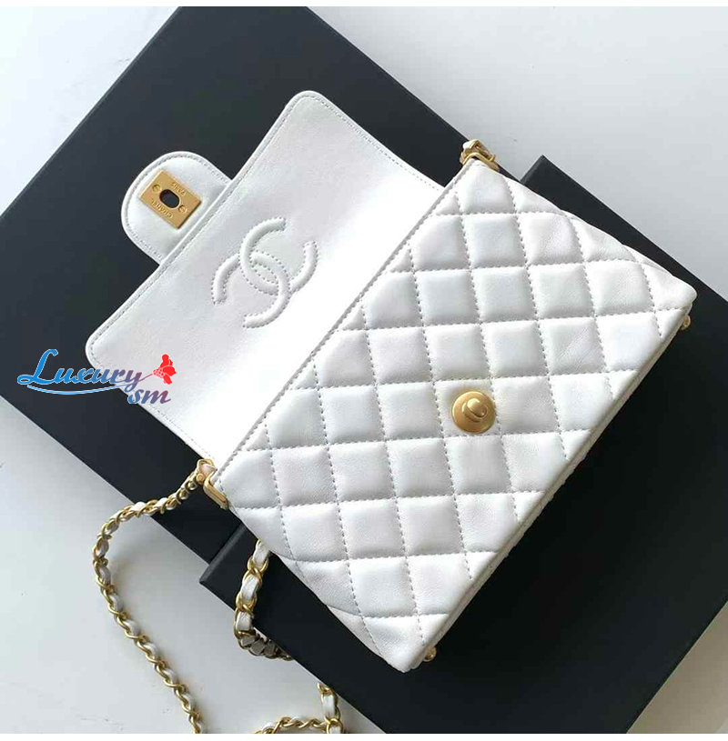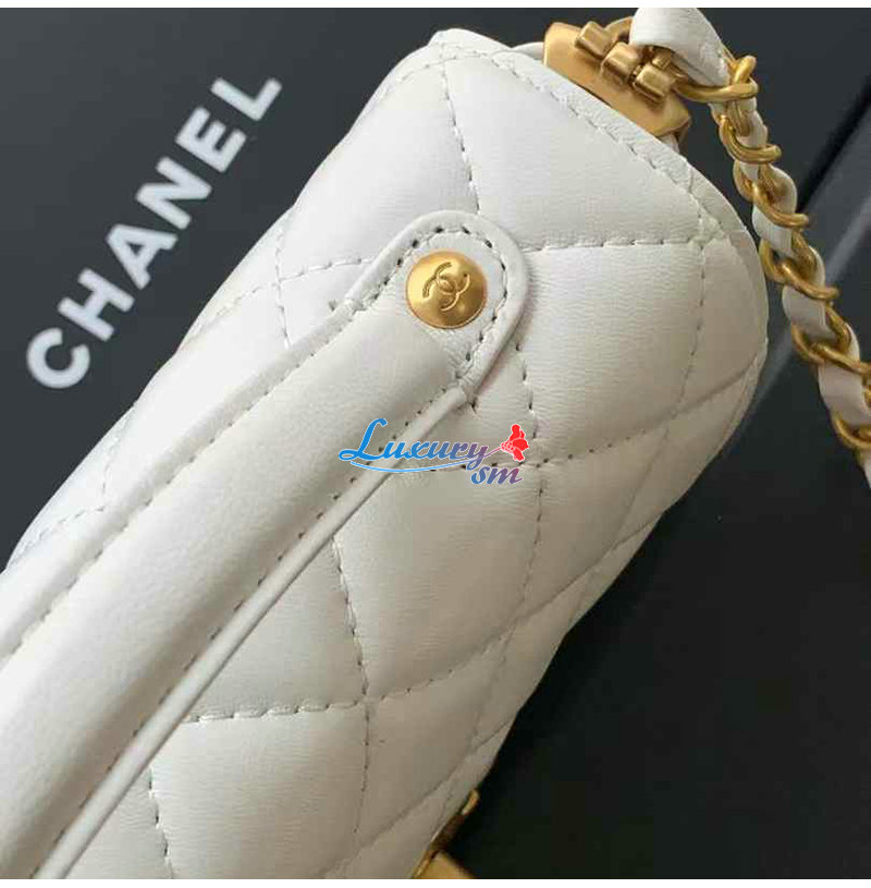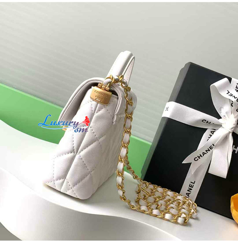CHANEL-AS5355 샤넬 화이트 램스킨 핸들 장식