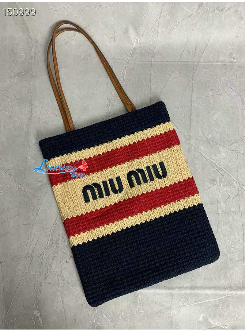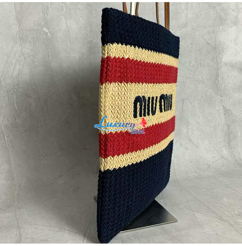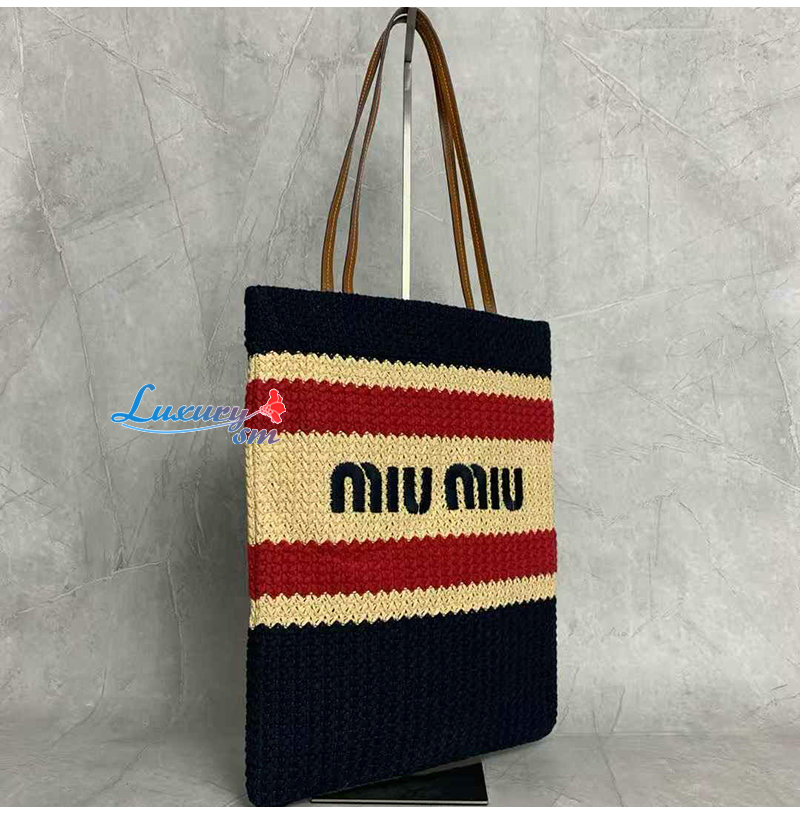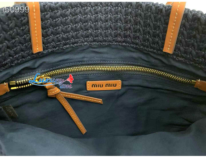 [스페셜오더]MIUMIU-5BG248 미우미우 네이비 라피아 효과 우븐 토트 백