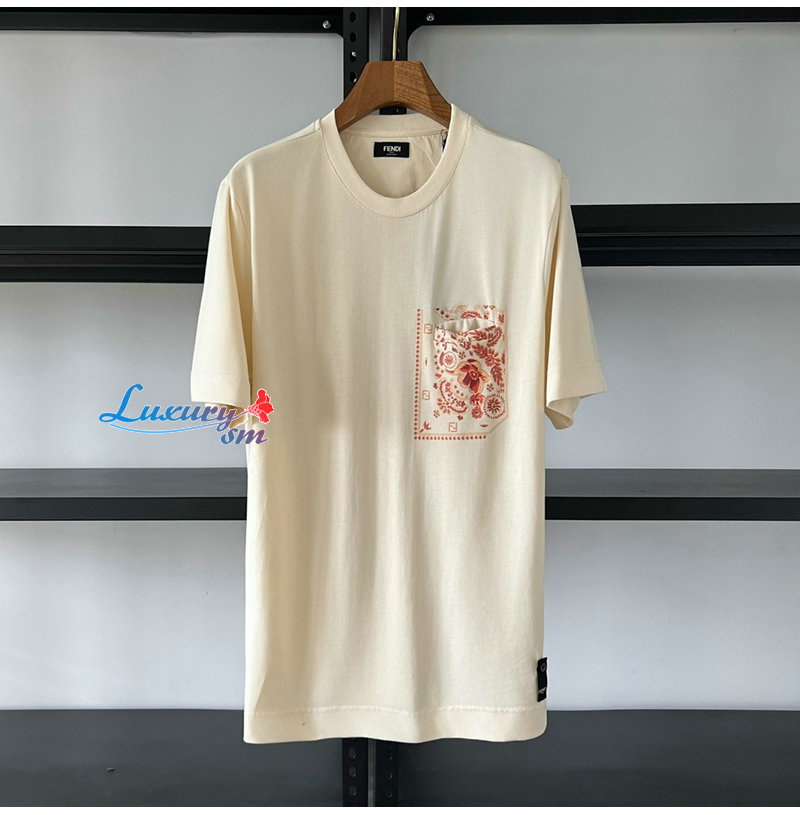 FENDI-06035 펜디 아이보리 아플리케 장식 티셔츠 남여공용