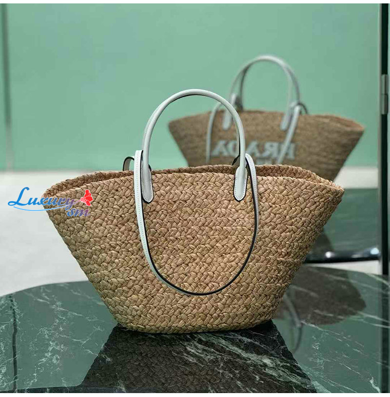 [스페셜오더]PRADA-1BG470 프라다 베이지/화이트 라지 라피아 가죽 쇼핑백