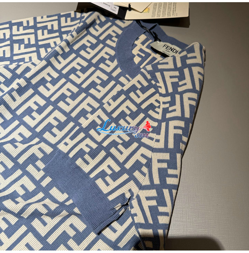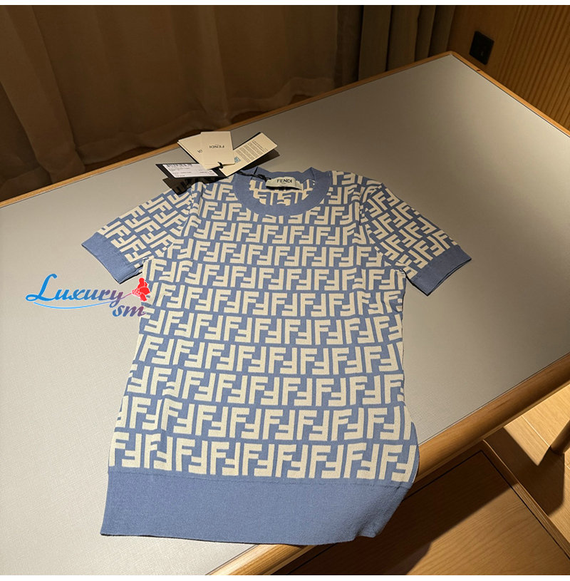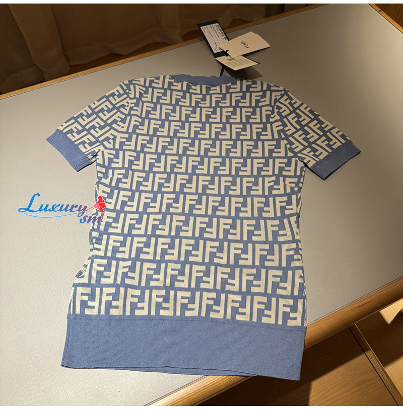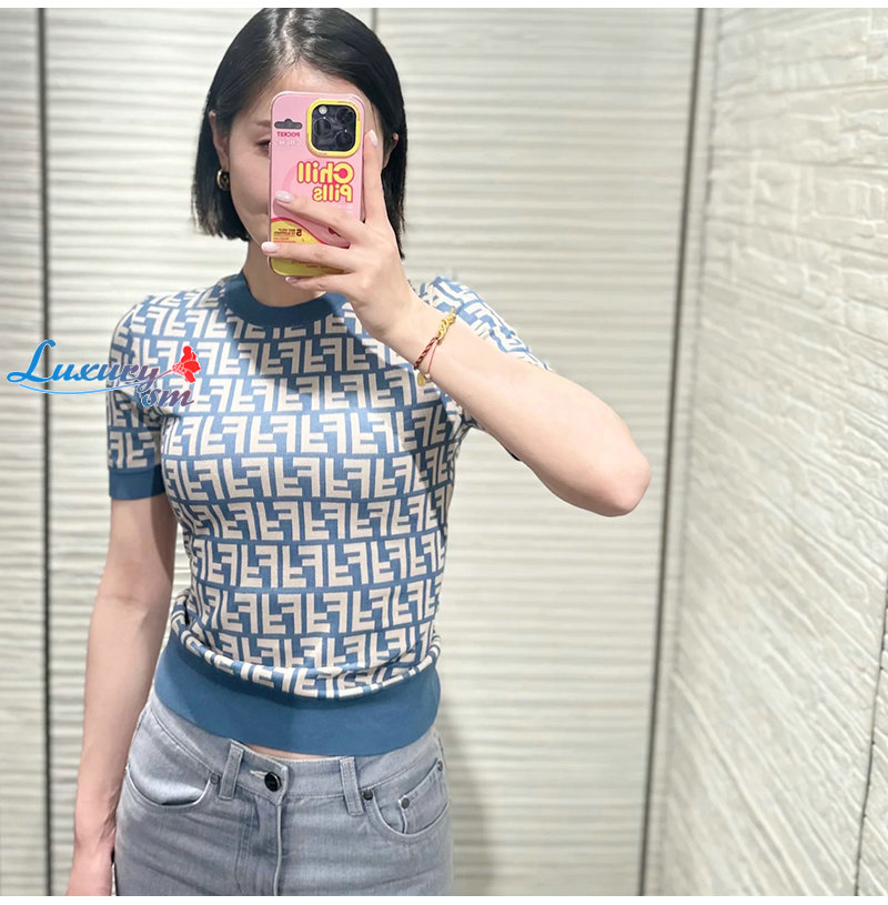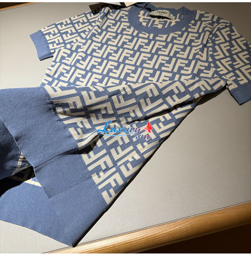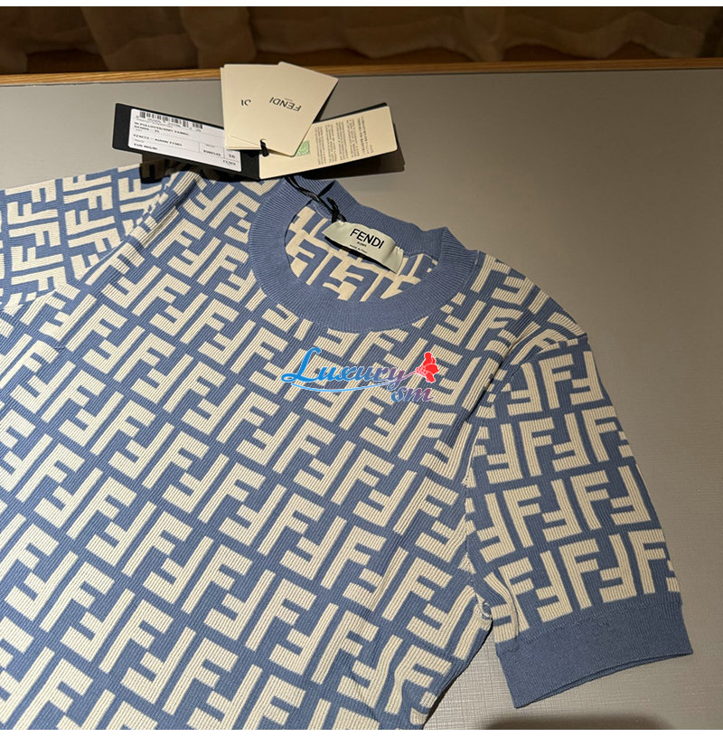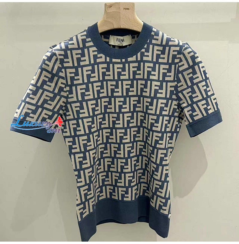 FENDI-FZXC72 펜디 블루 FF 코튼 티셔츠 여성용