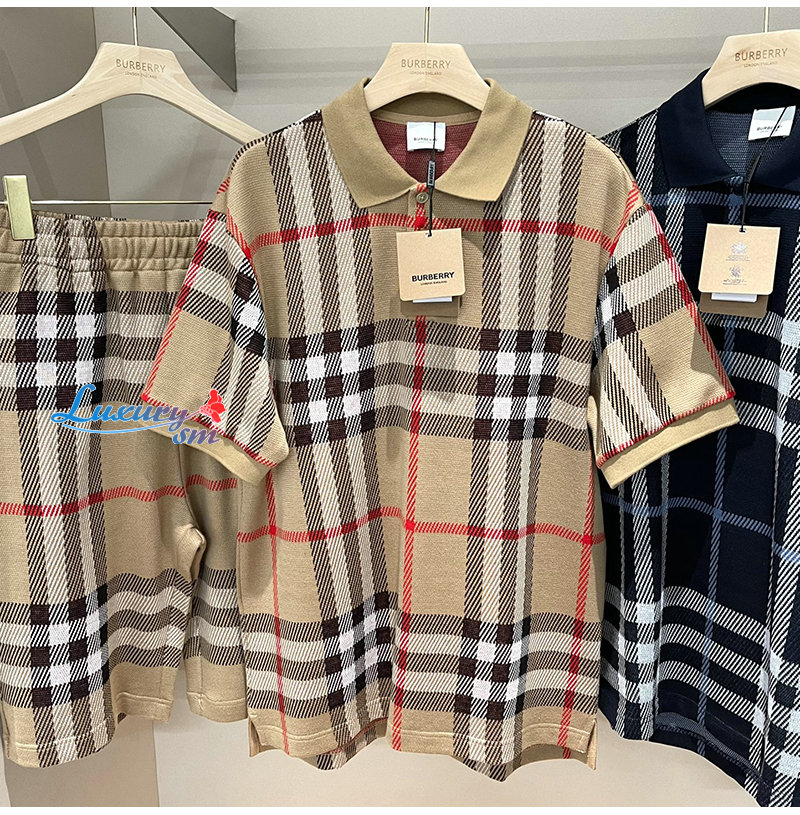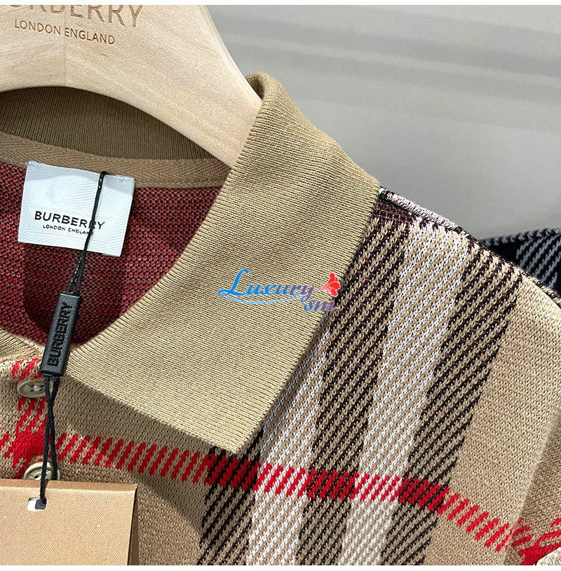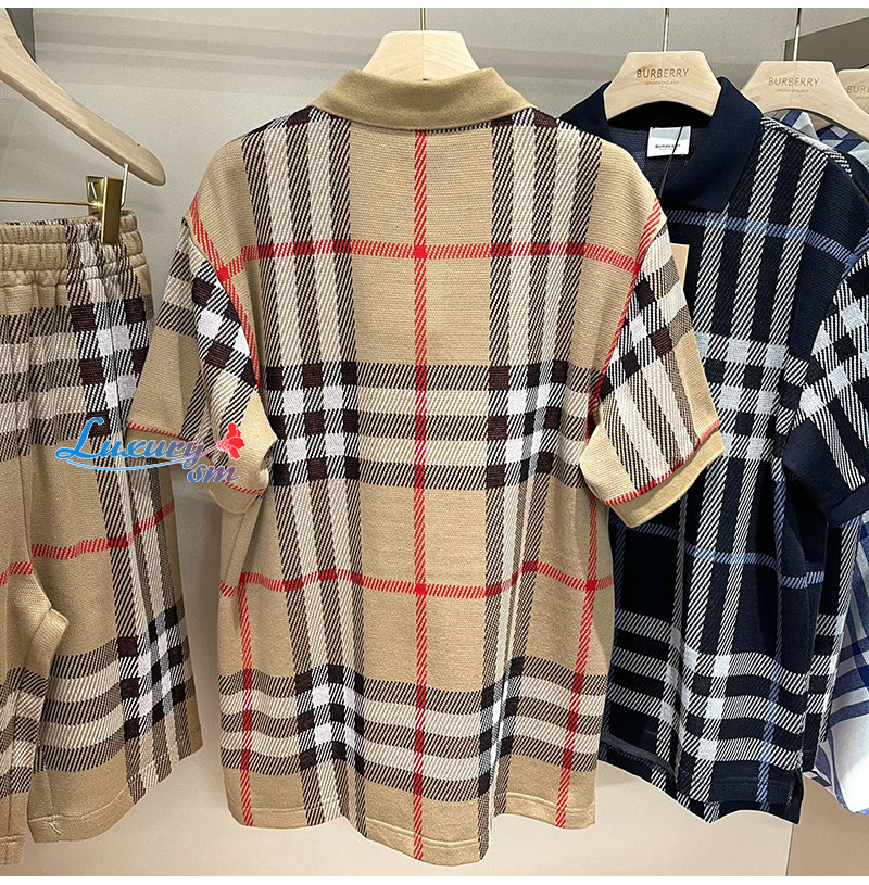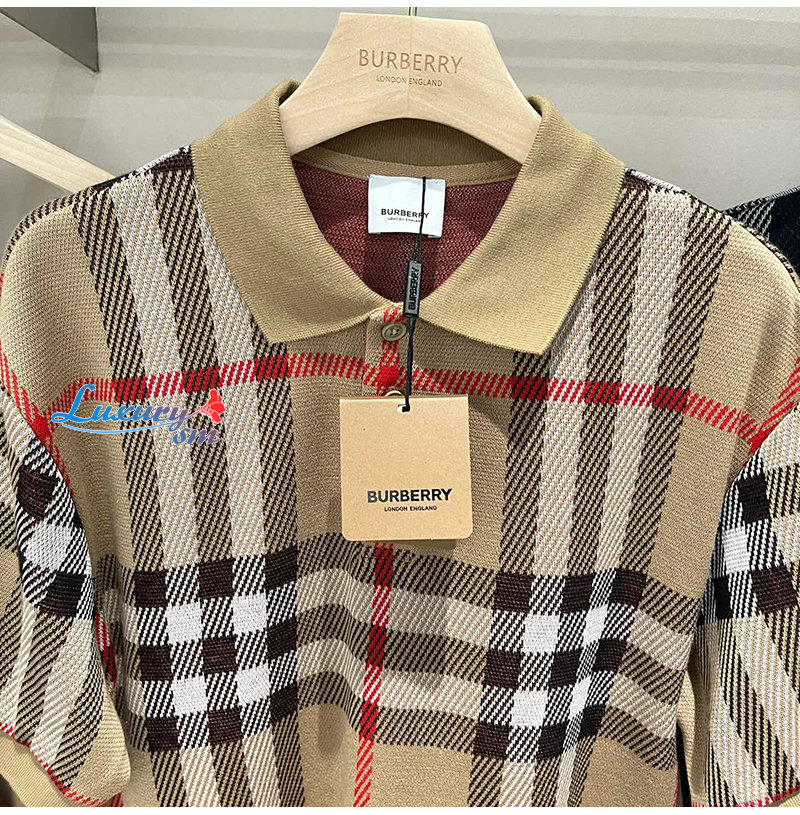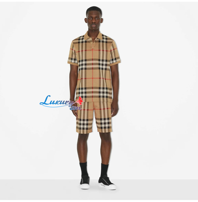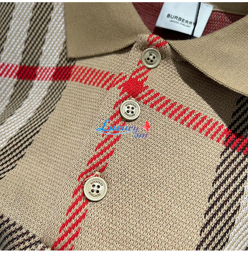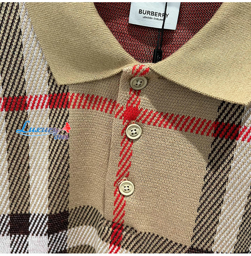 BURBERRY-06225 버버리 베이지 니트 코튼 체크 폴로 티셔츠 남여공용
