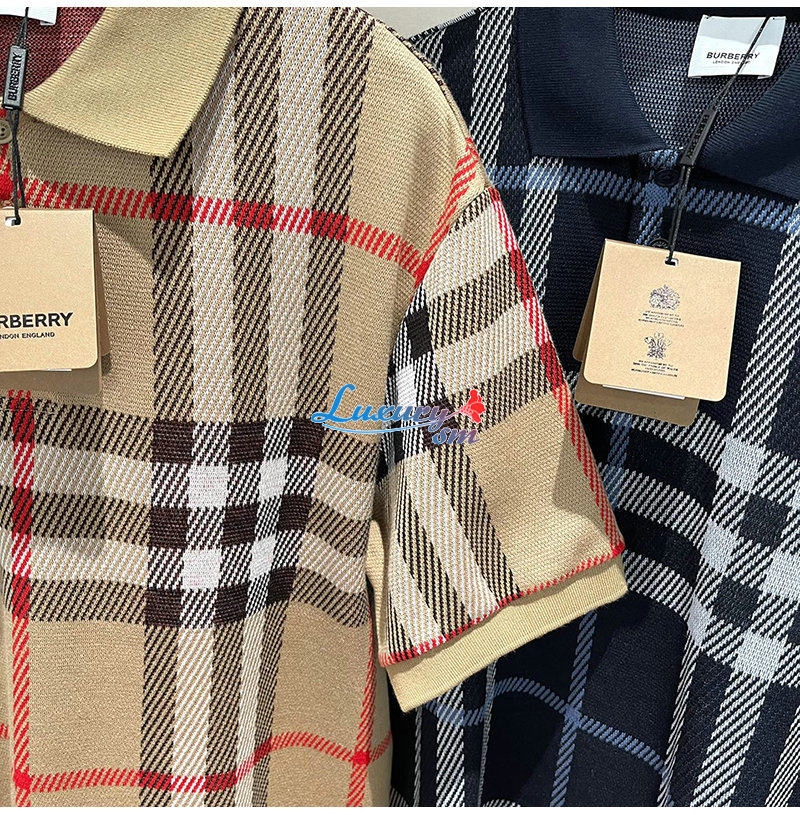 BURBERRY-06226 버버리 네이비 니트 코튼 체크 폴로 티셔츠 남여공용 가격 : 180,000원