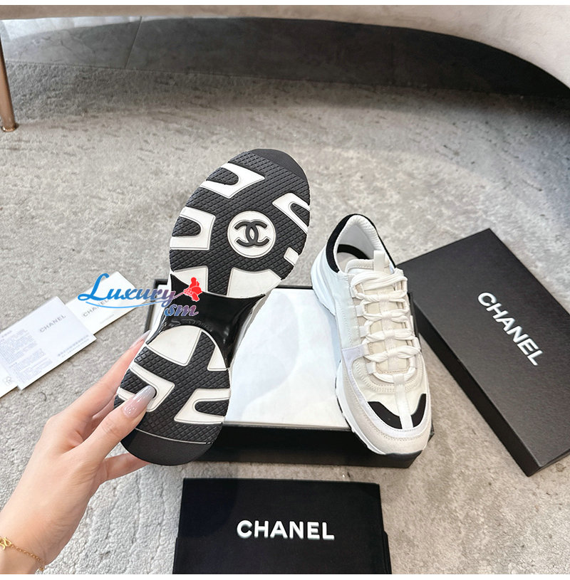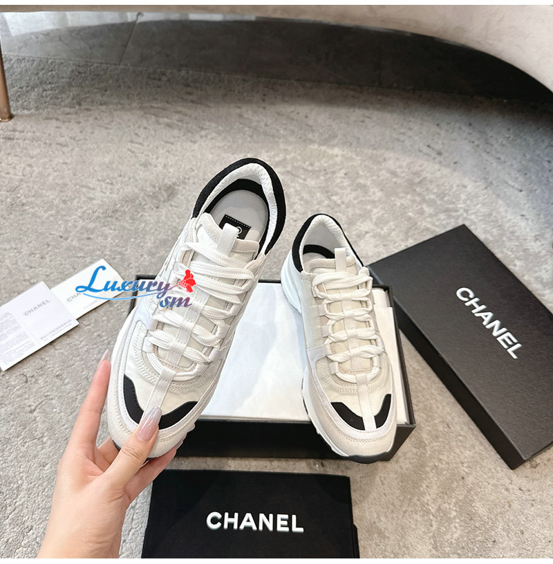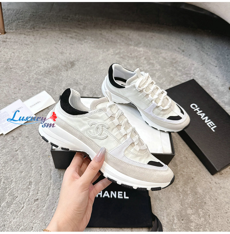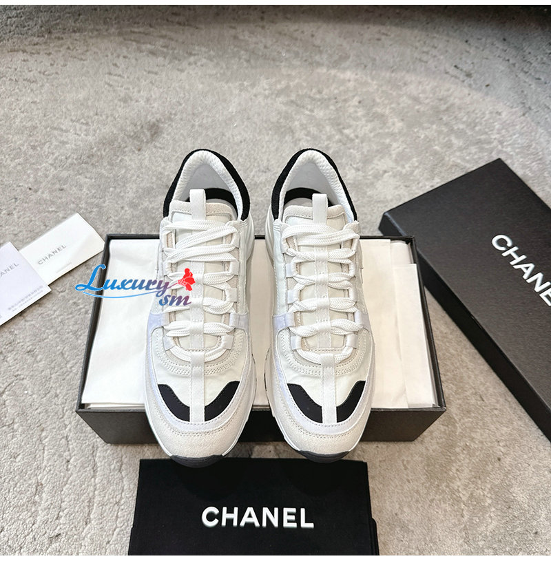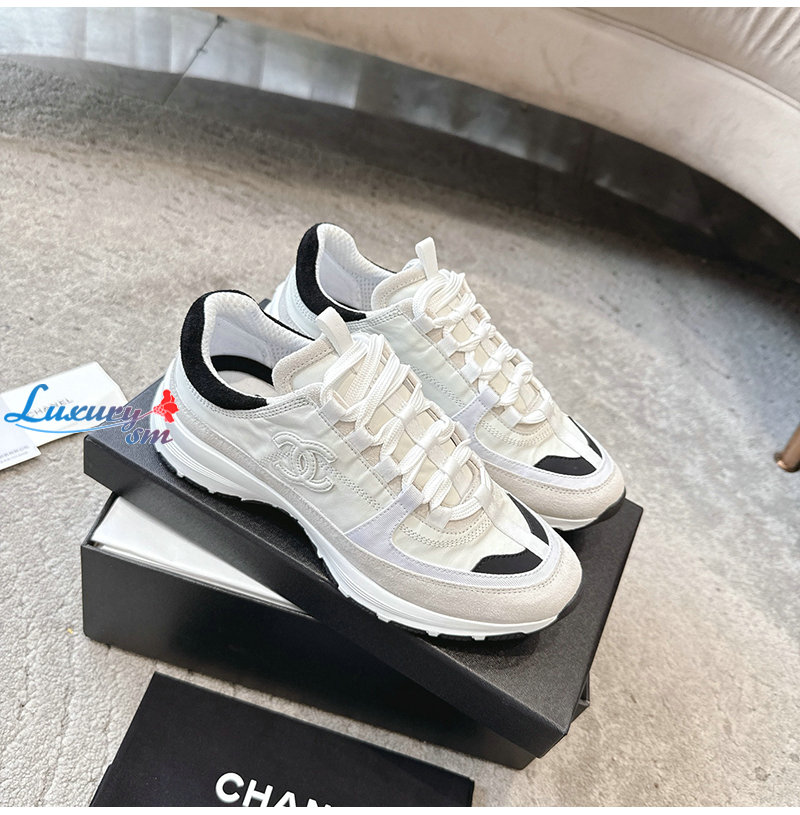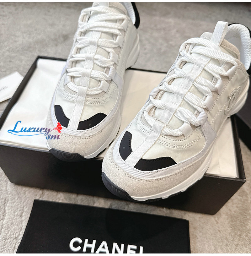 CHANEL-G46609 샤넬 화이트 카프스킨 스니커즈 여성용
