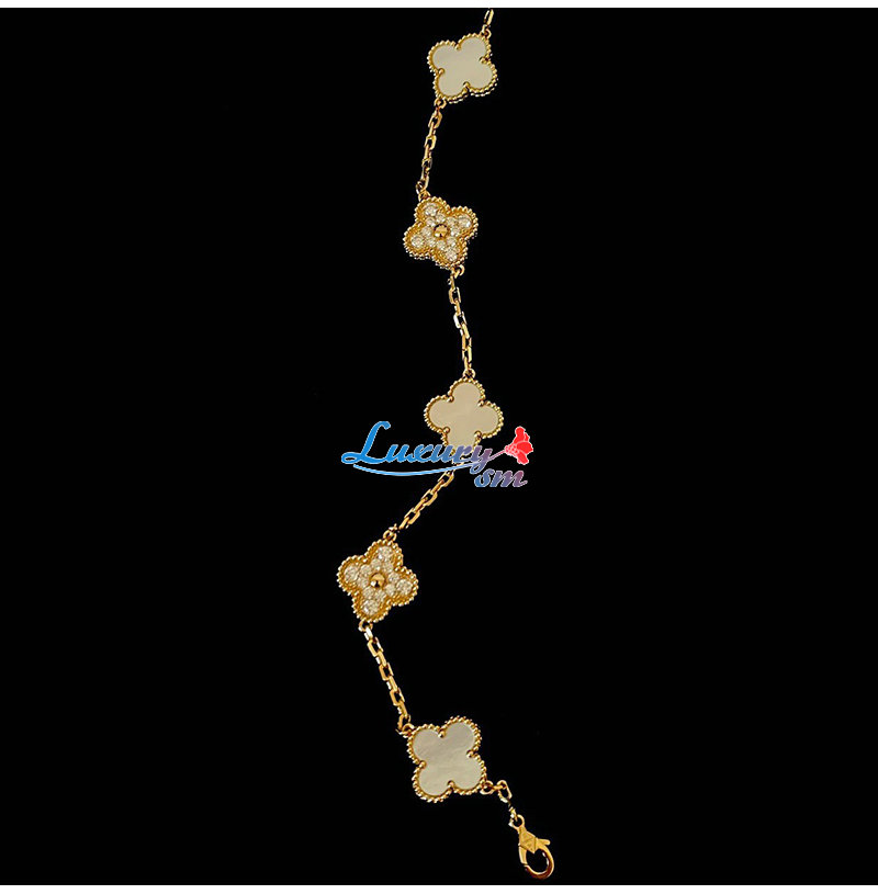 [스페셜오더]VAN CLEEF ARPELS-VCARO7 반클리프 옐로우 골드/화이트 다이아몬드 빈티지 알함브라 브레이슬릿