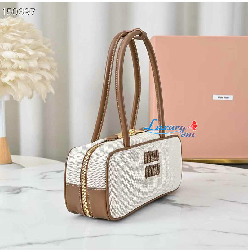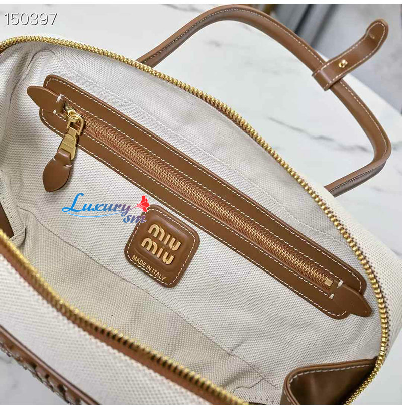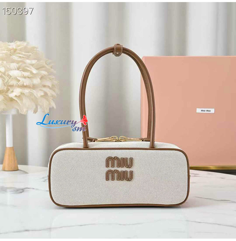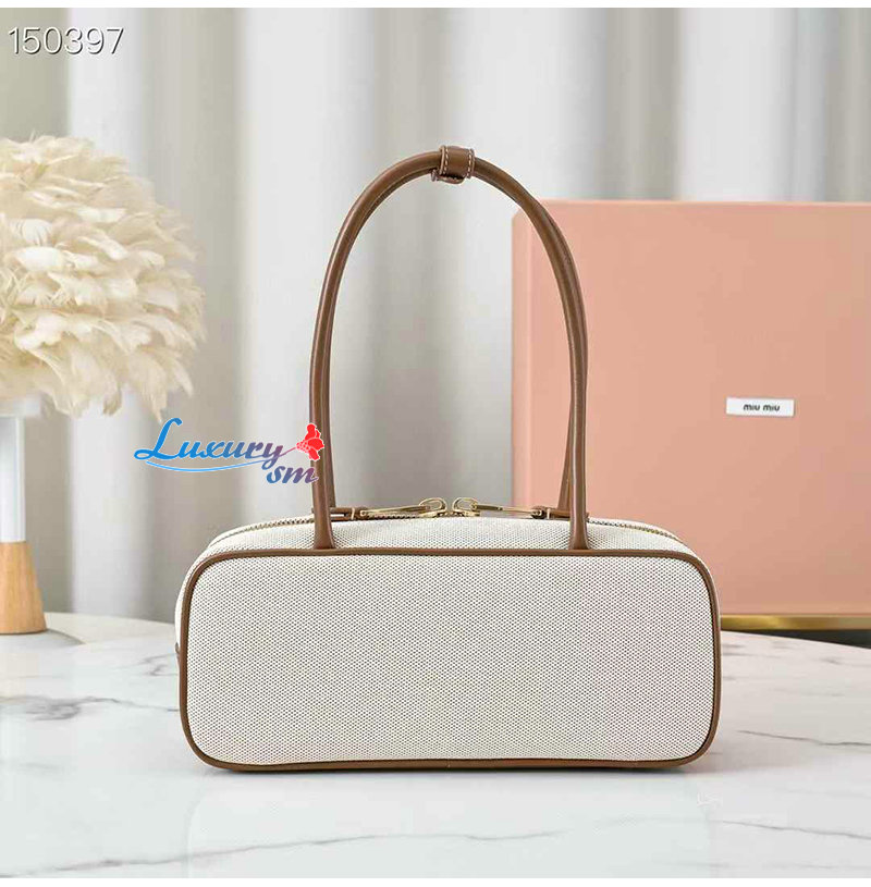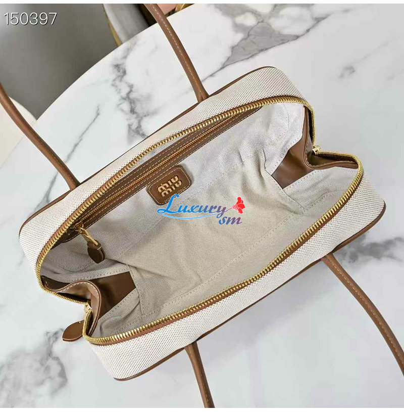 [스페셜오더]MIUMIU-5BB173 미우미우 내추럴 캔버스 가죽 보 백