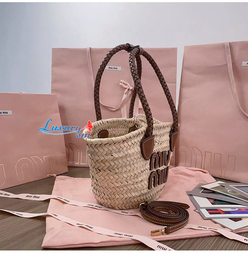 [스페셜오더]MIUMIU-5BG273 미우미우 베이지 우븐 패브릭 토트 백