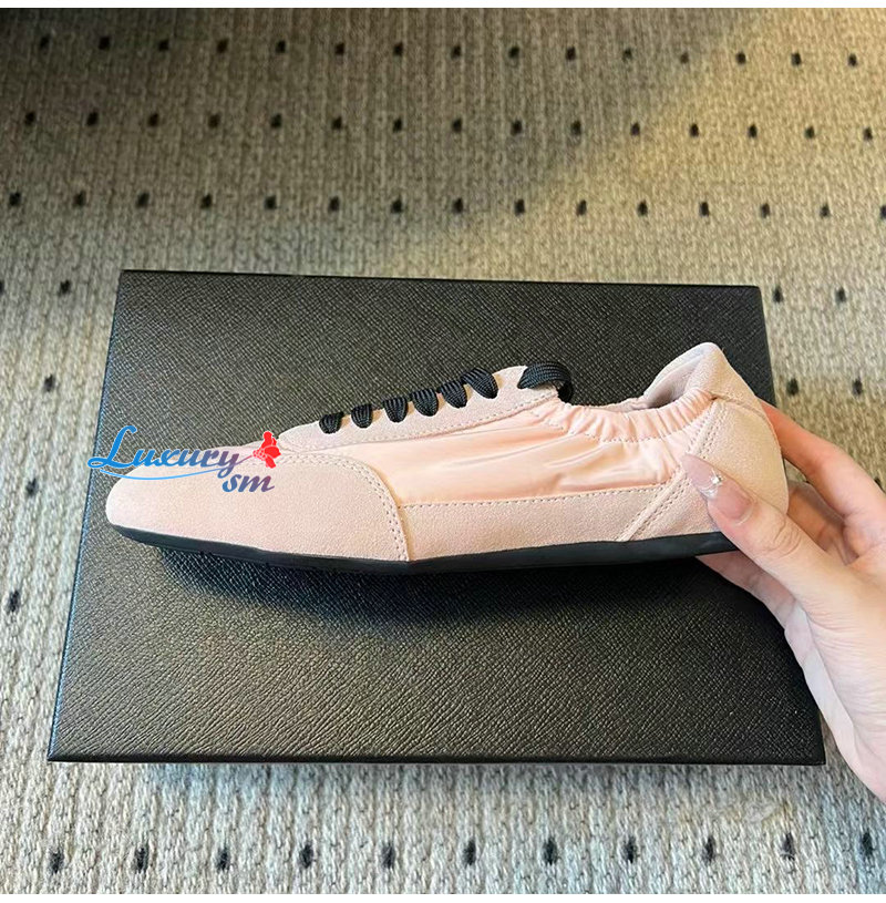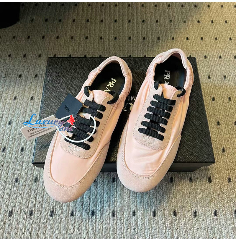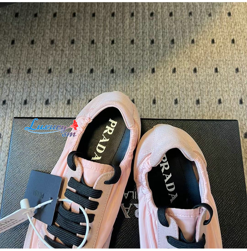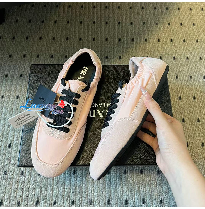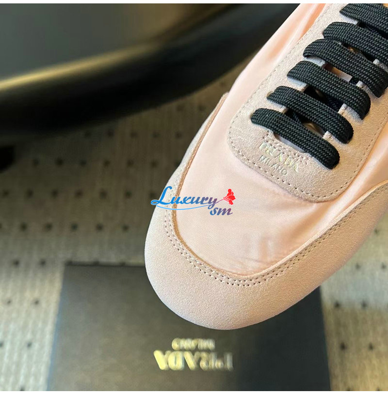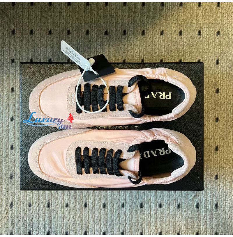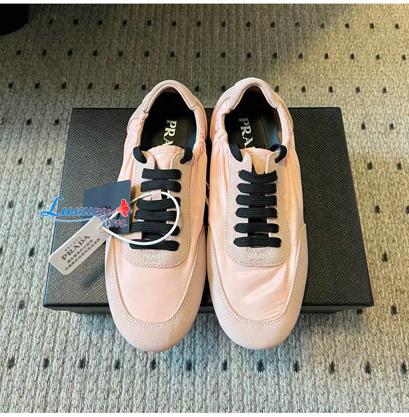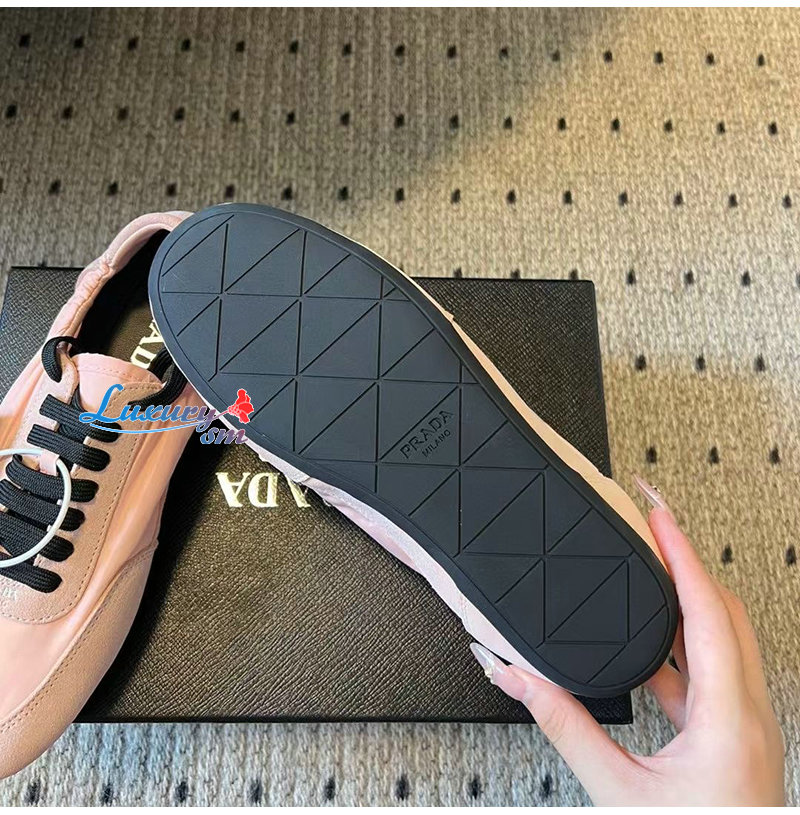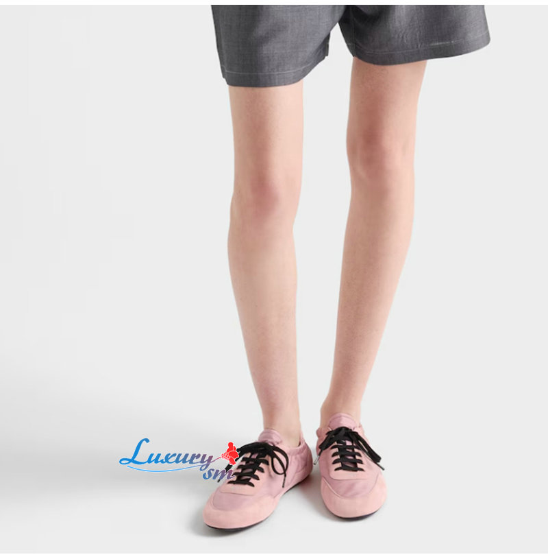 PRADA-1E959N 프라다 핑크 컬랩스 리나일론 스웨이드 스니커즈 여성용