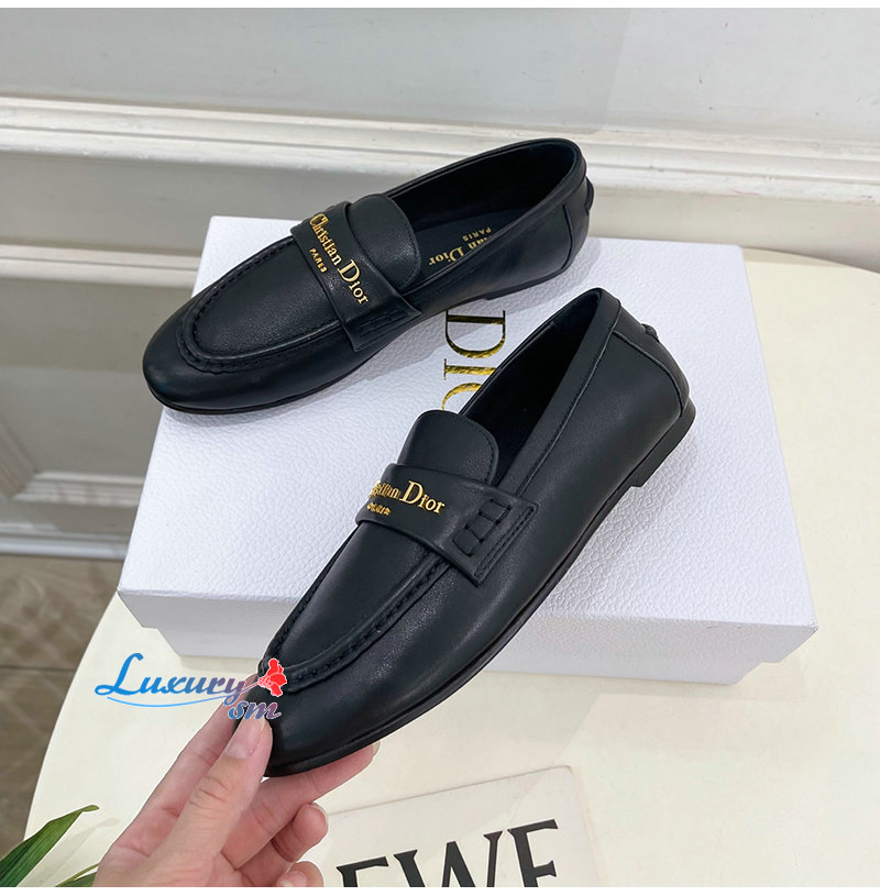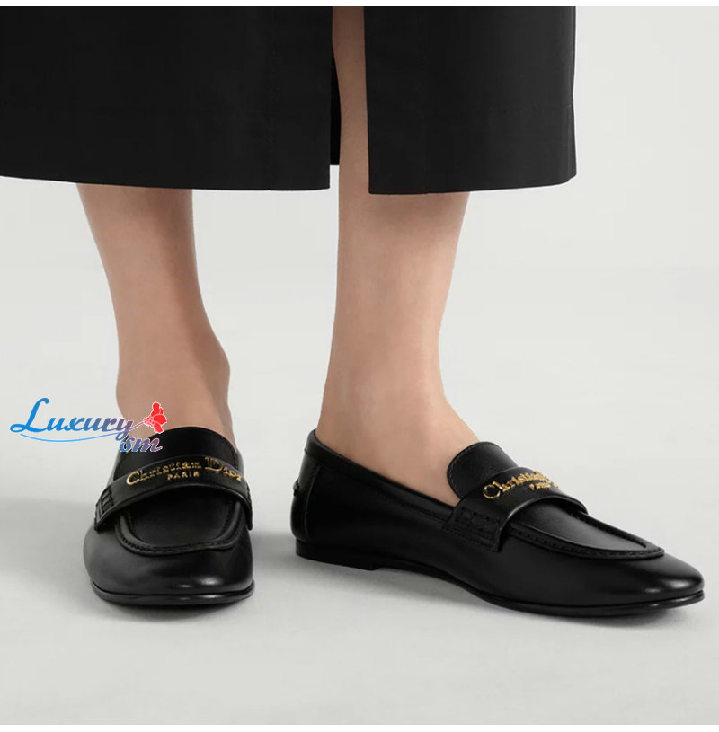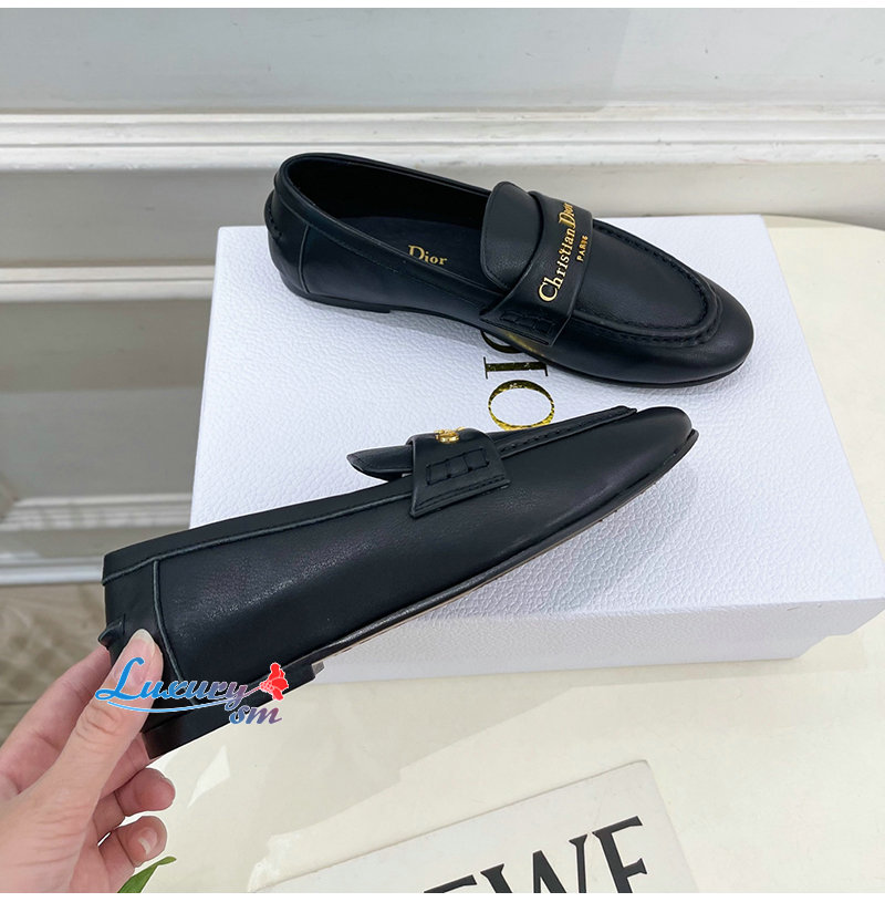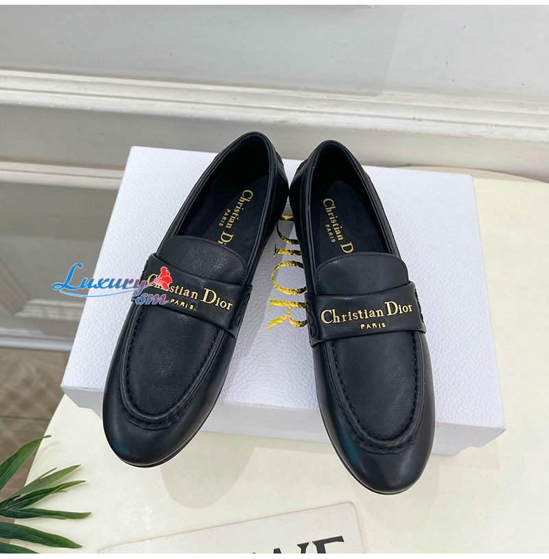 DIOR-KDF039 디올 블랙 송아지 가죽 Dior Boy 로퍼 여성용