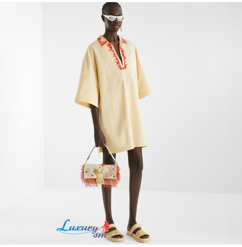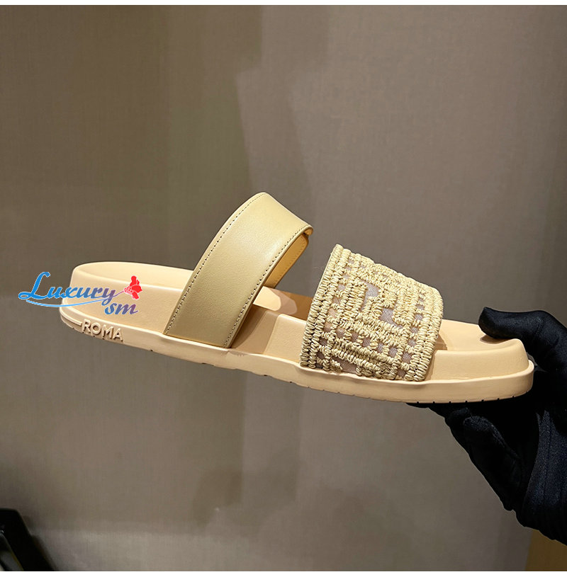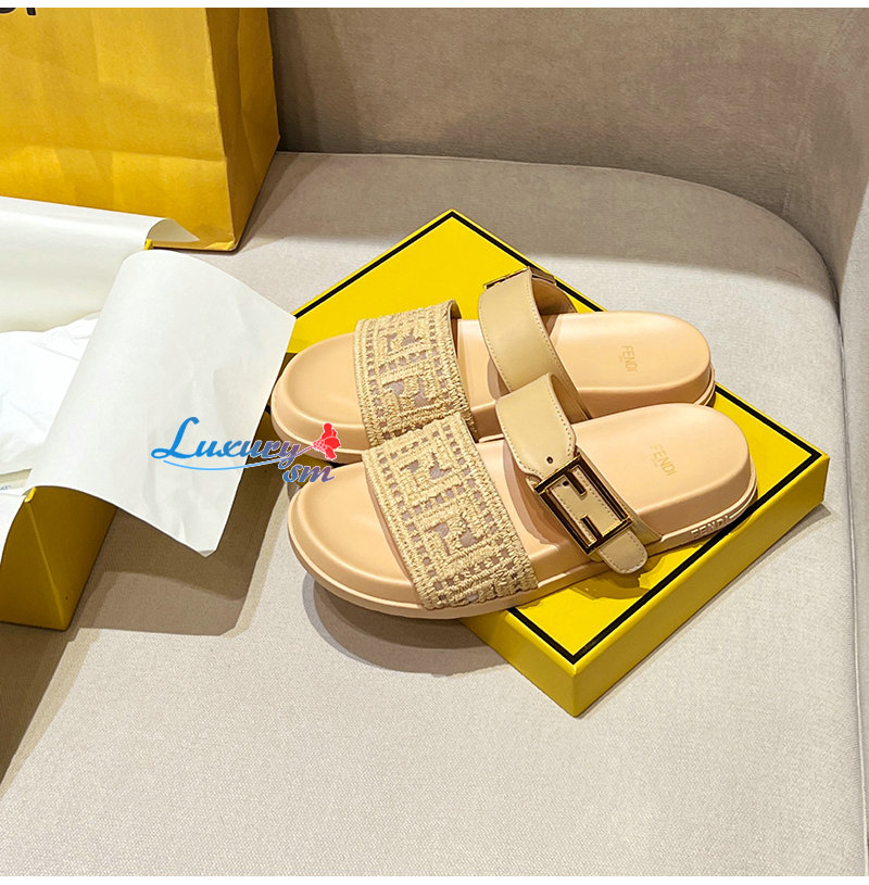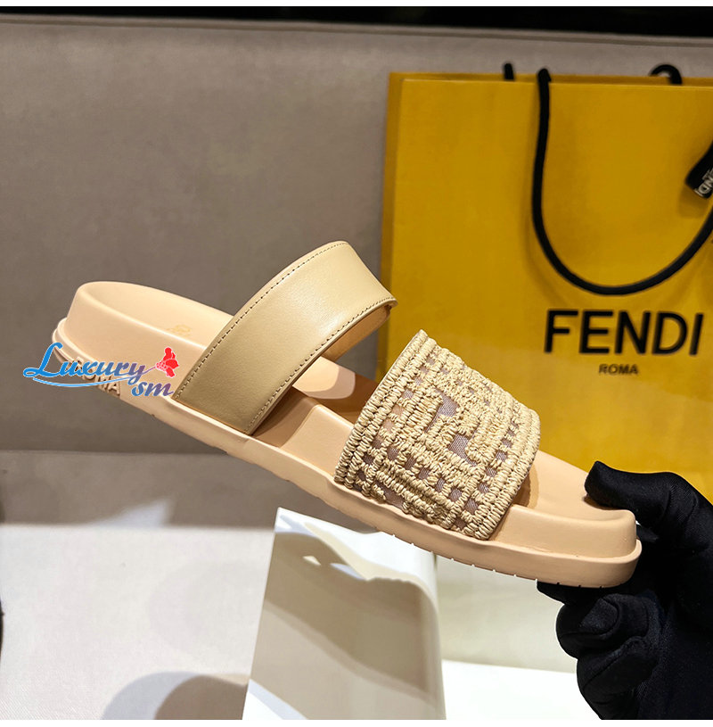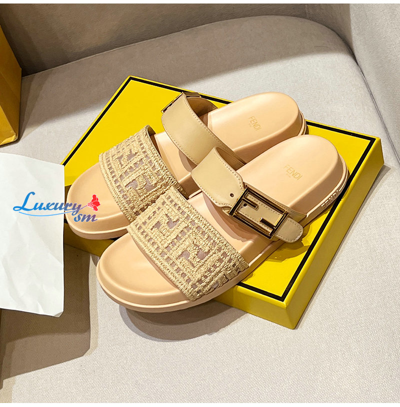 FENDI-8X8710 펜디 베이지 FF 자수 메쉬 펜디 필 슬라이드 여성용