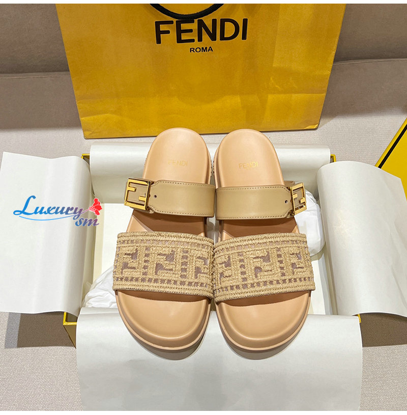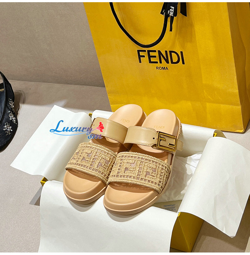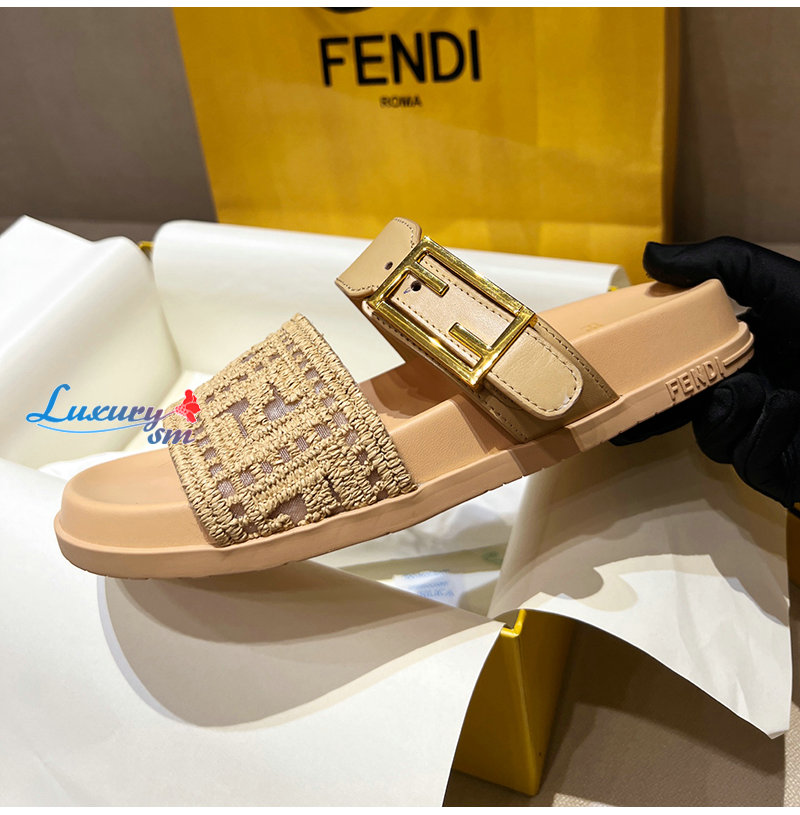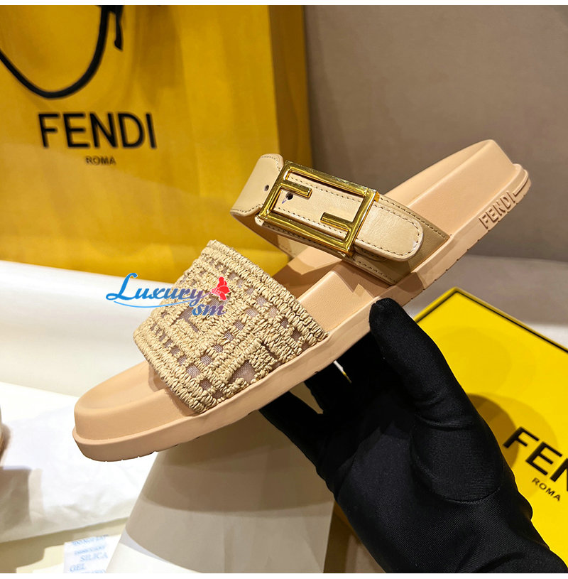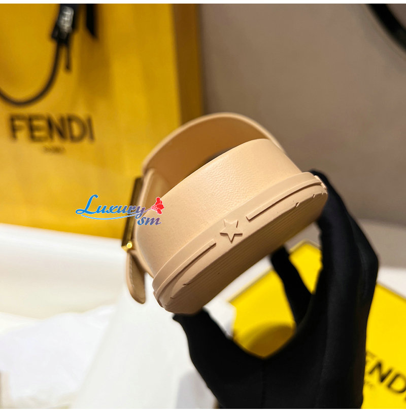 FENDI-8X8710 펜디 라이트 브라운 가죽 밍크 펜디 필 슬라이드 여성용