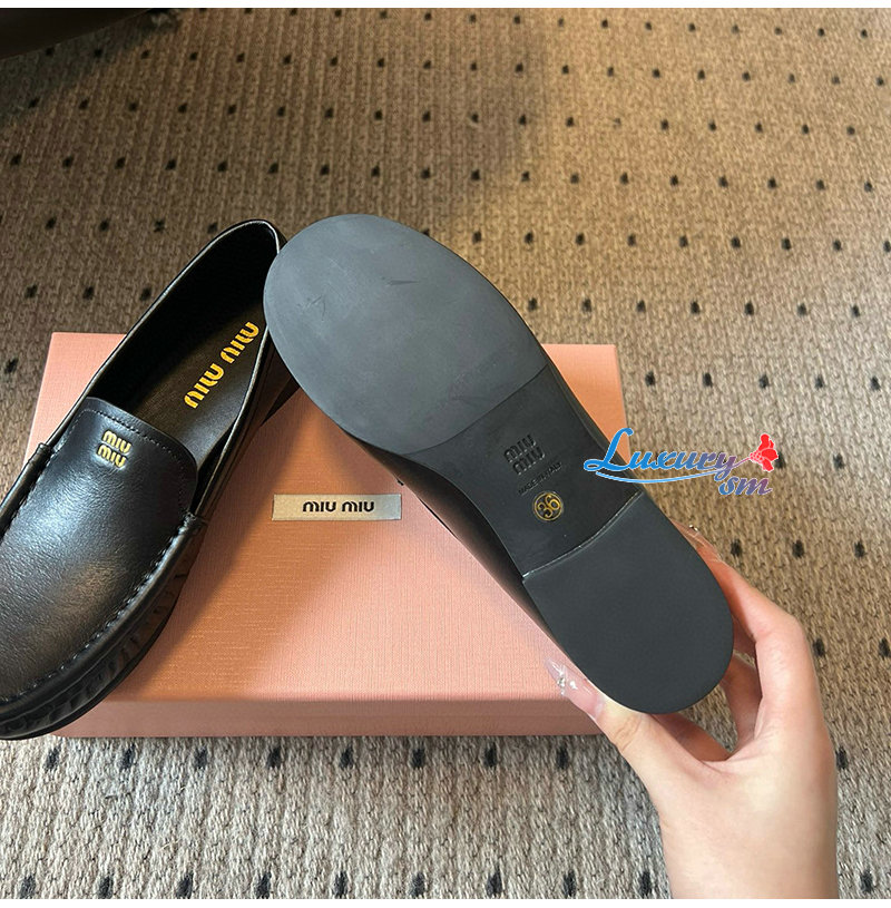 MIUMIU-5D499E 미우미우 블랙 버팔로 가죽 로퍼 여성용