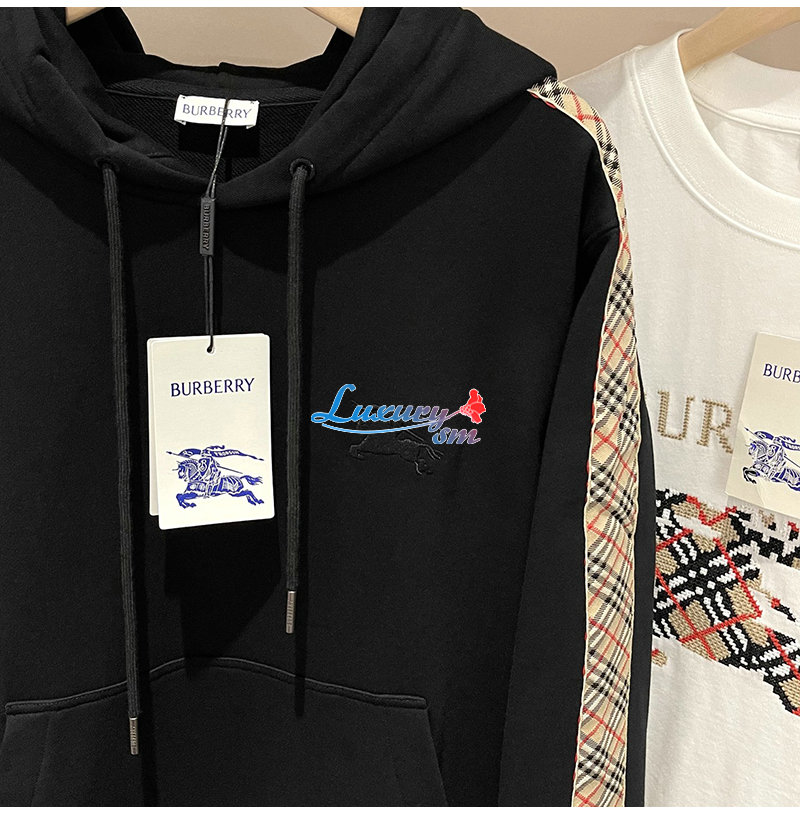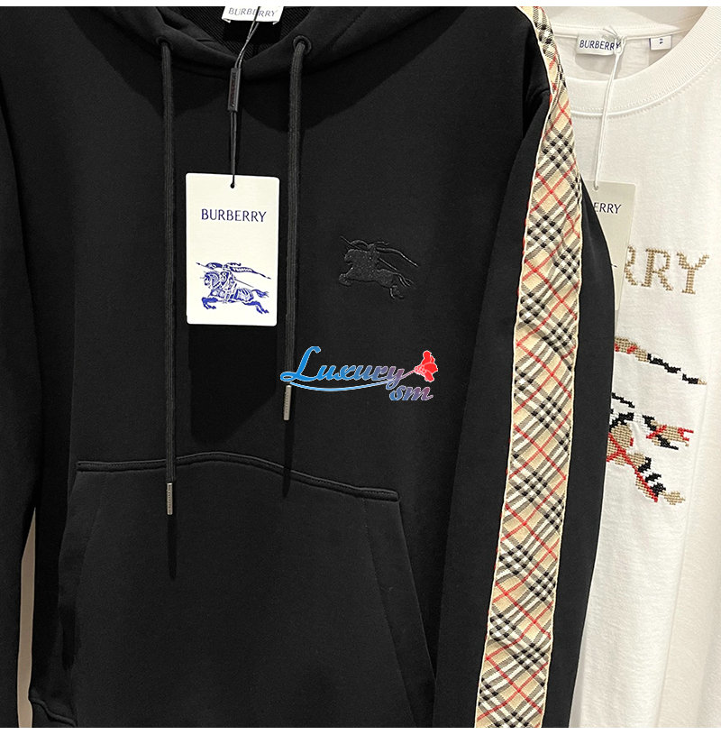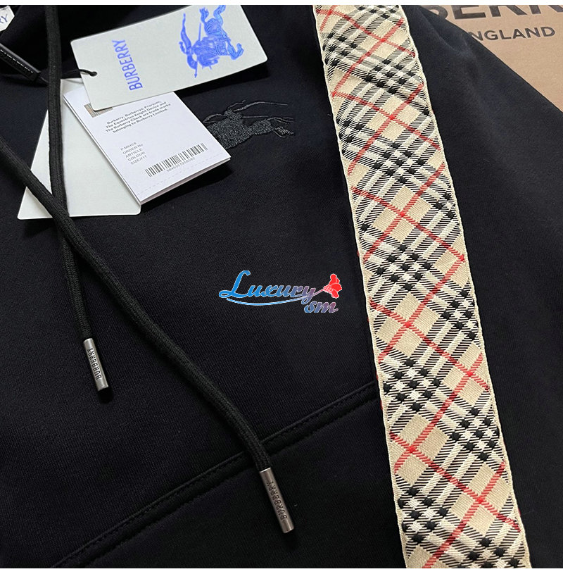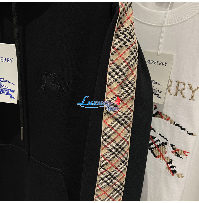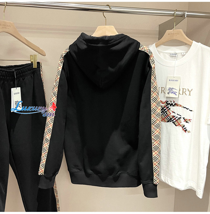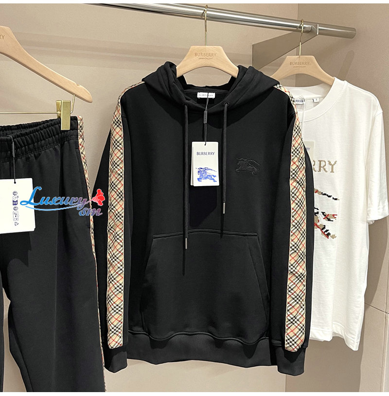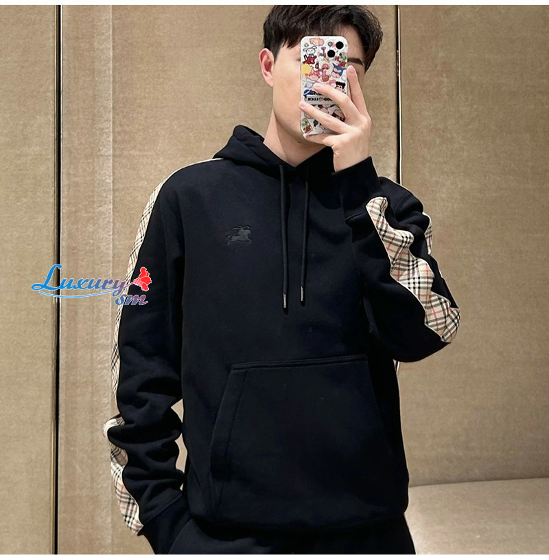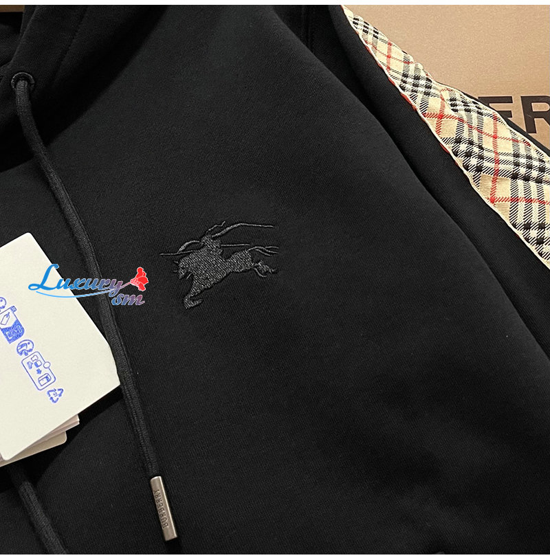 BURBERRY-81177411 버버리 블랙 체크 트리밍 코튼 후디 남여공용