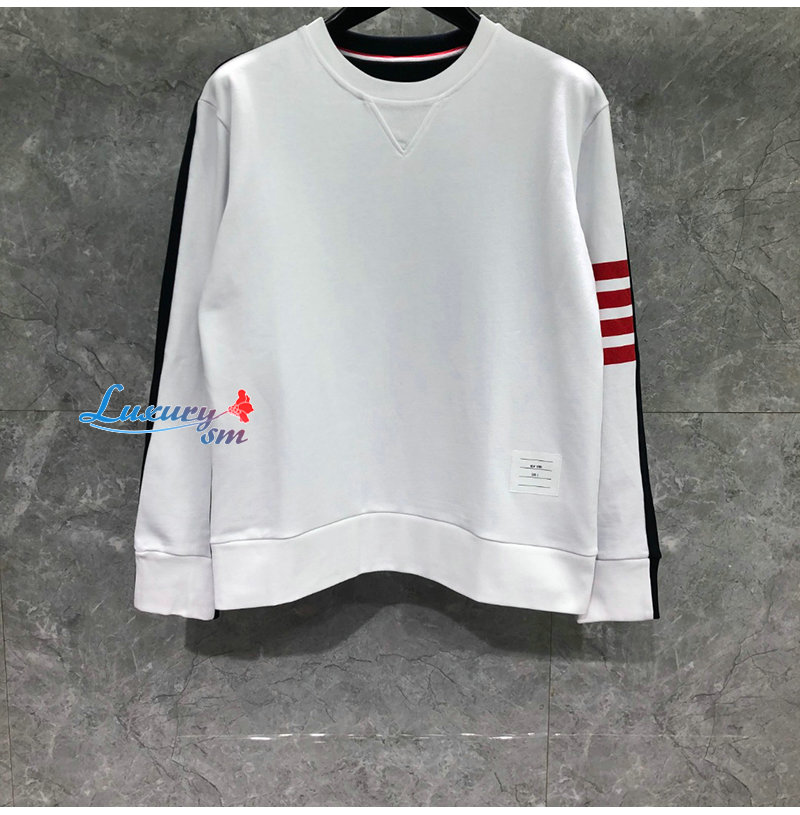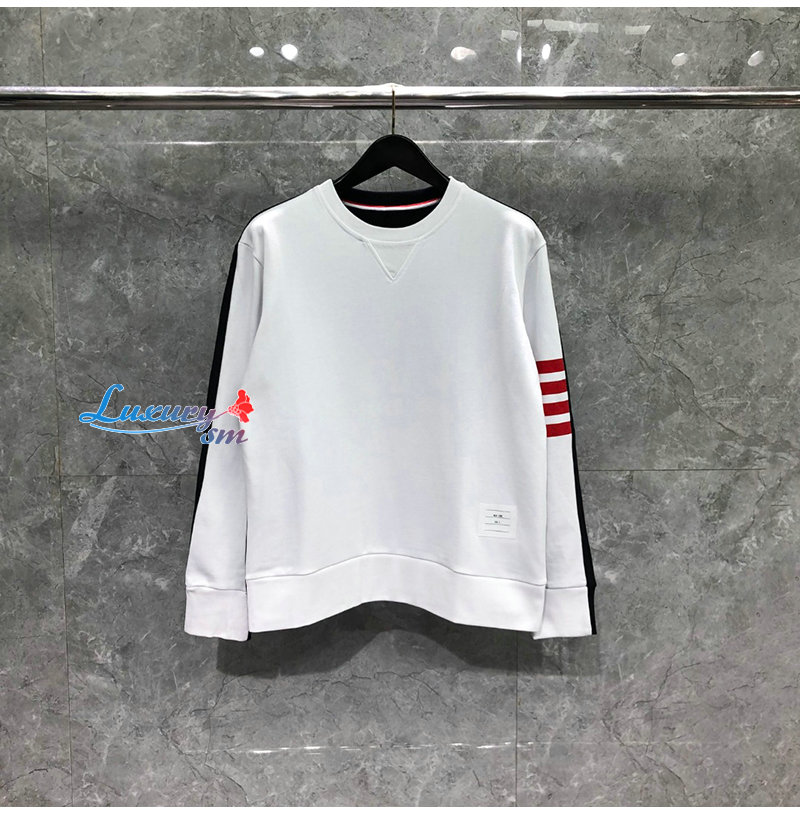 THOM BROWNE-08202 톰 브라운 화이트 스트라이프 장식 스웨트셔츠 남성용