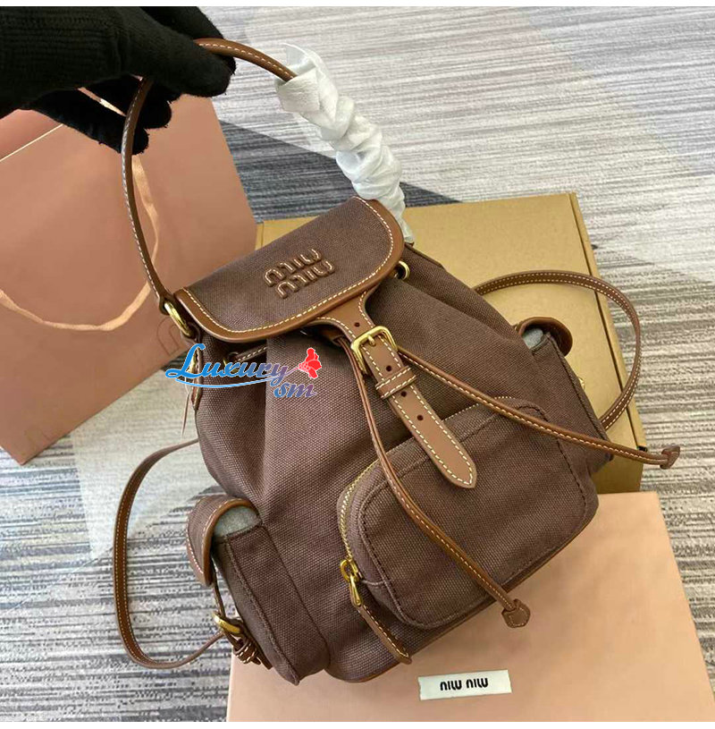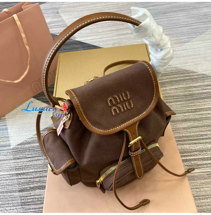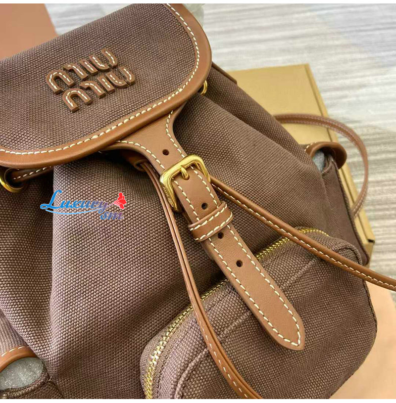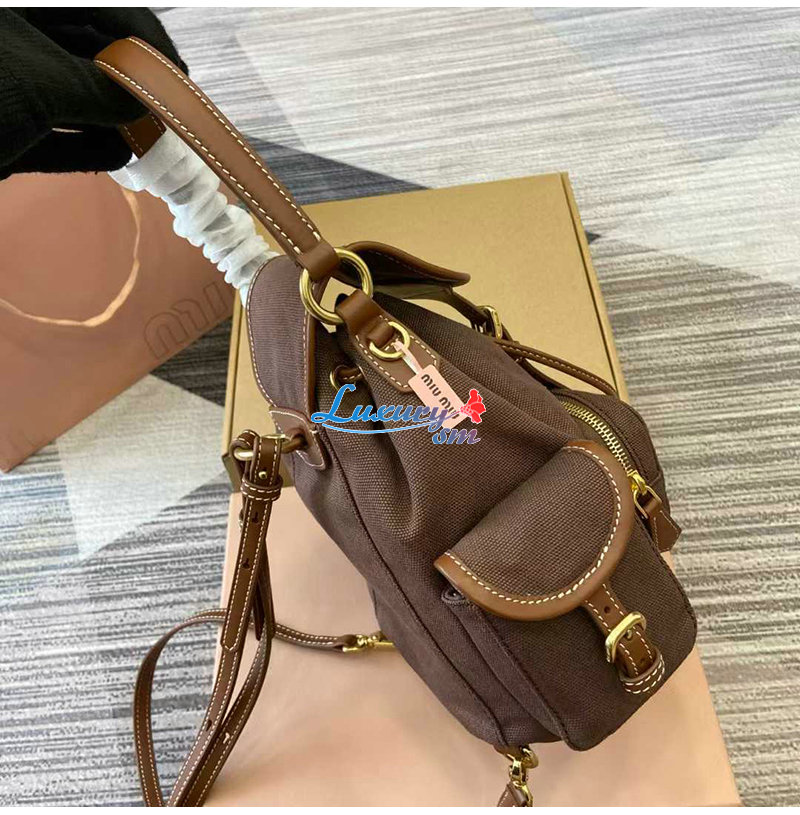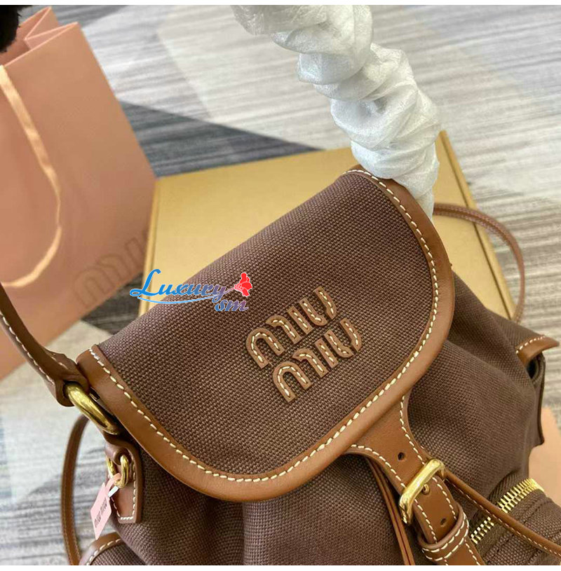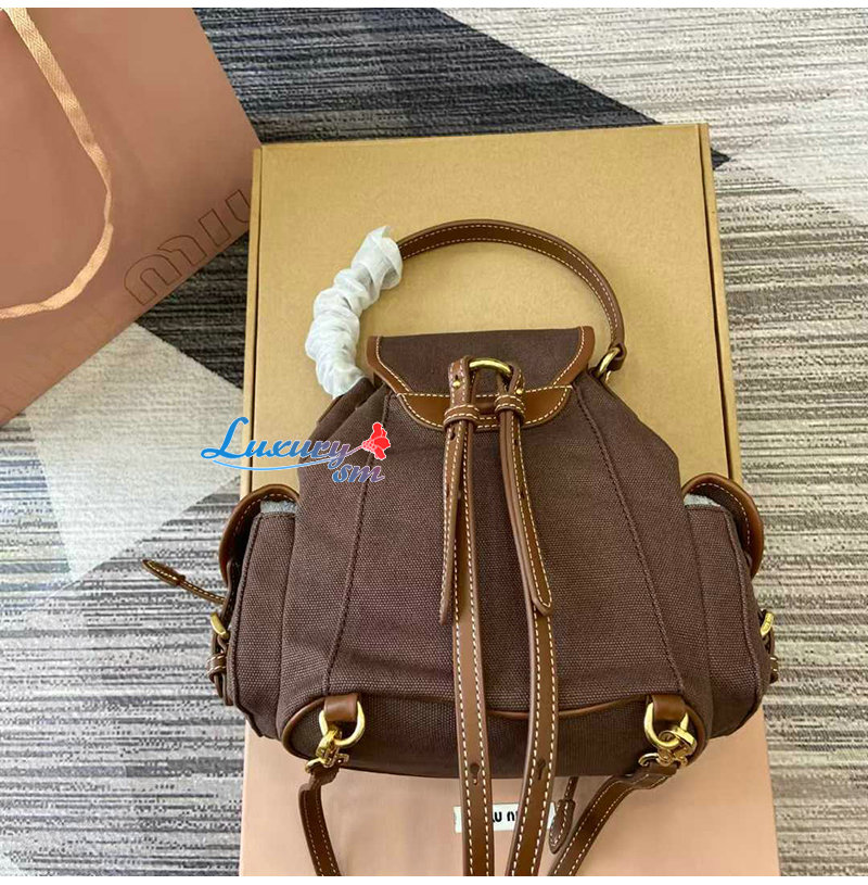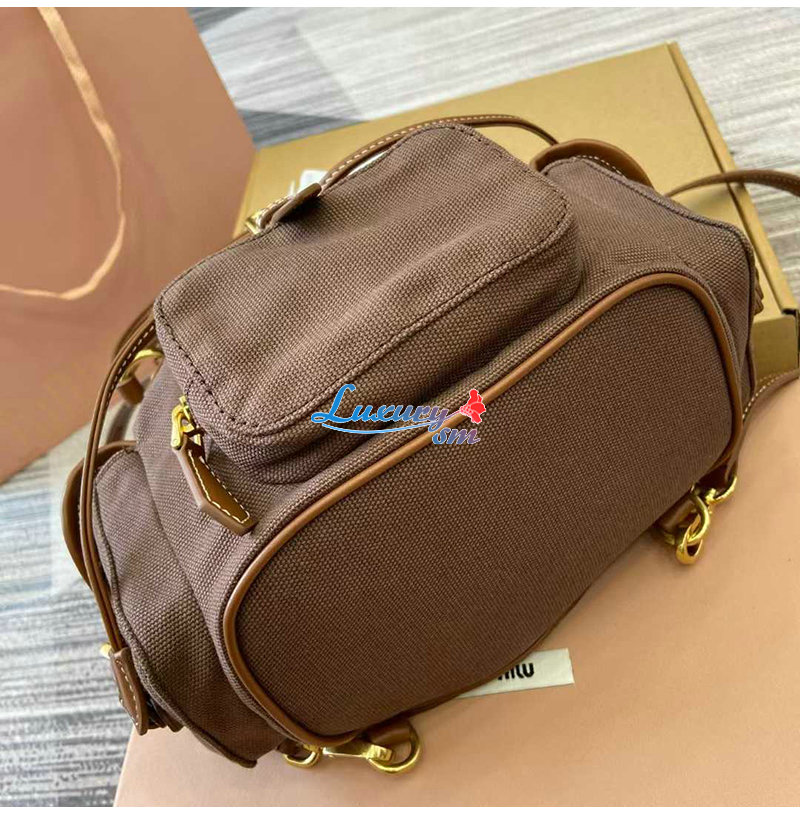 [스페셜오더]MIUMIU-5BZ043 미우미우 브라운 캔버스 가죽 백팩 스몰