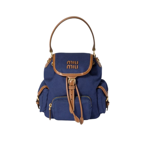 [스페셜오더]MIUMIU-5BZ043 미우미우 블루 캔버스 가죽 백팩 스몰