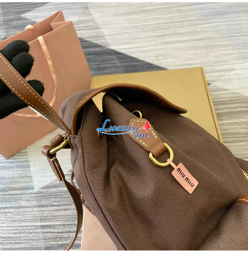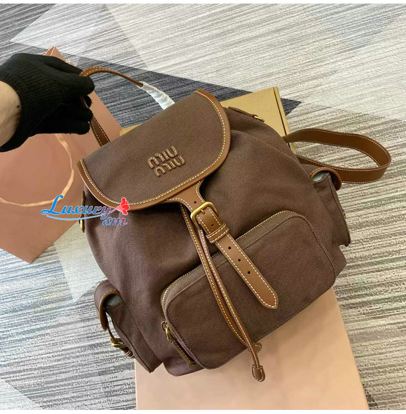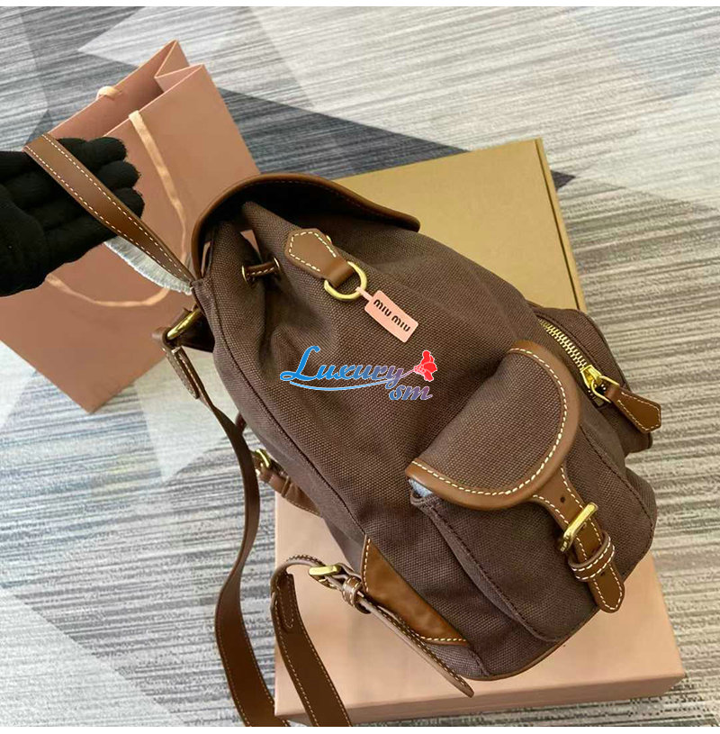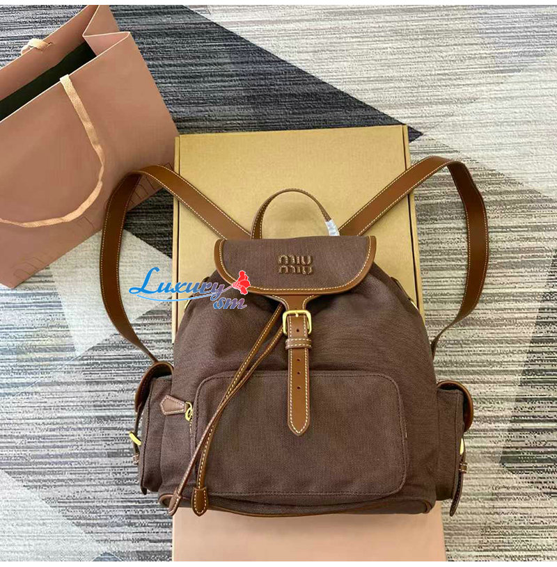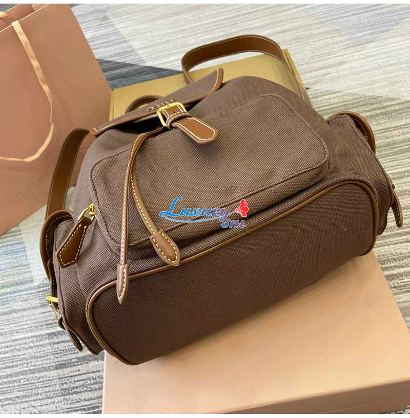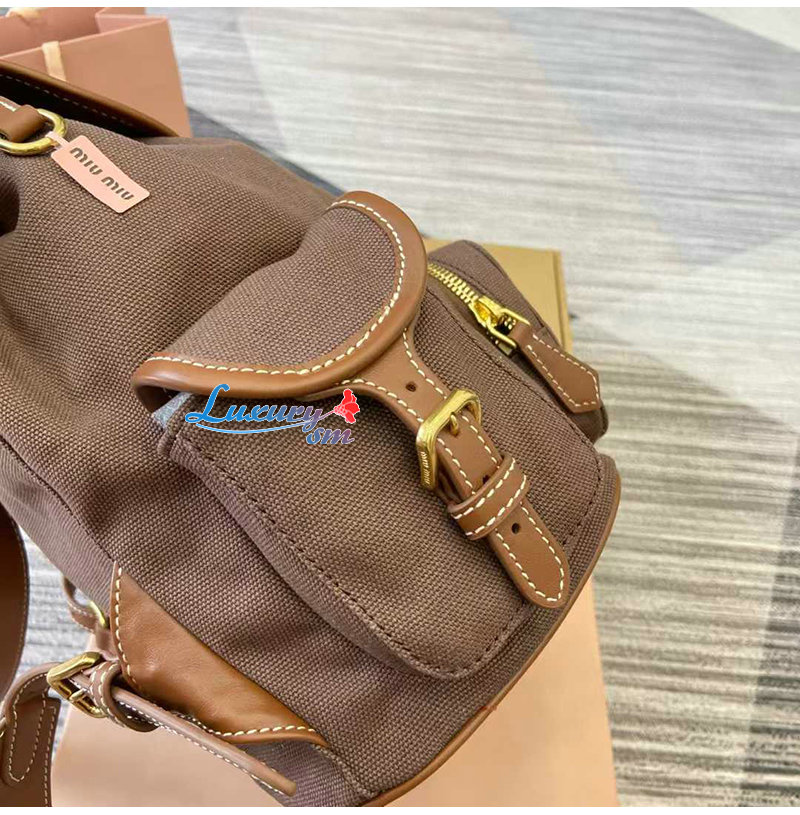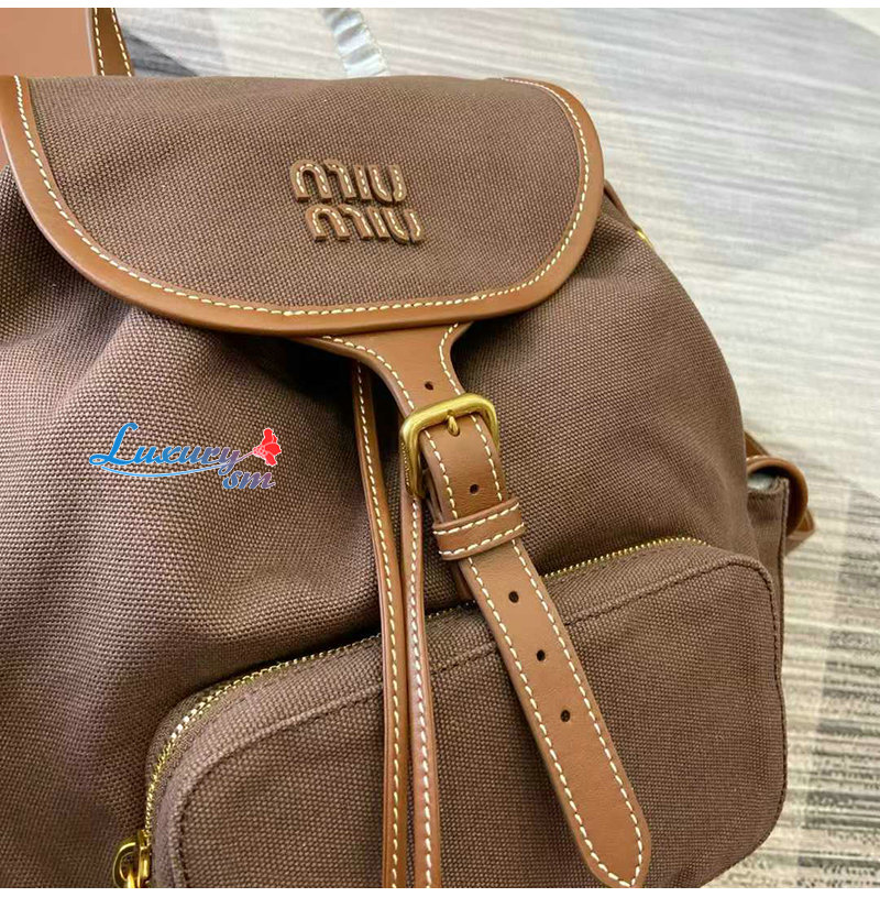 [스페셜오더]MIUMIU-5BZ042 미우미우 브라운 캔버스 가죽 백팩 미듐