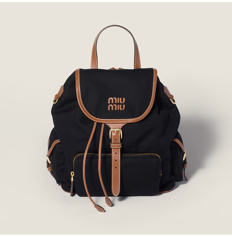 [스페셜오더]MIUMIU-5BZ042 미우미우 캔버스 및 가죽 백팩 블랙
