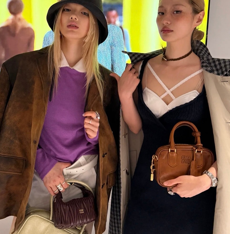 정제된 실루엣과 대담한 미우미우 감성이 조화를 이루며,