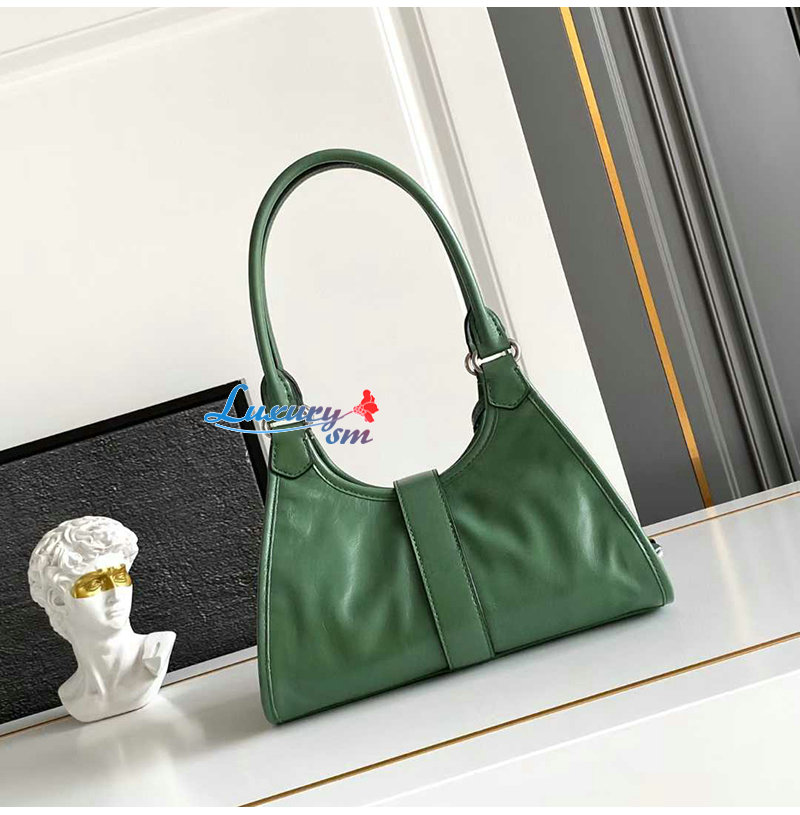트라페즈 실루엣과 길게 디자인된 핸들은 숄더백으