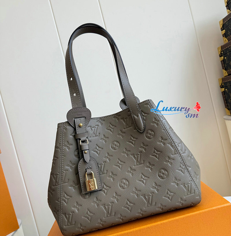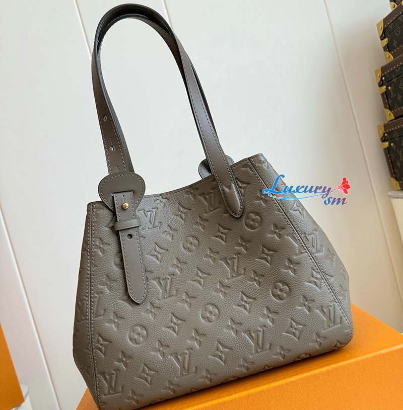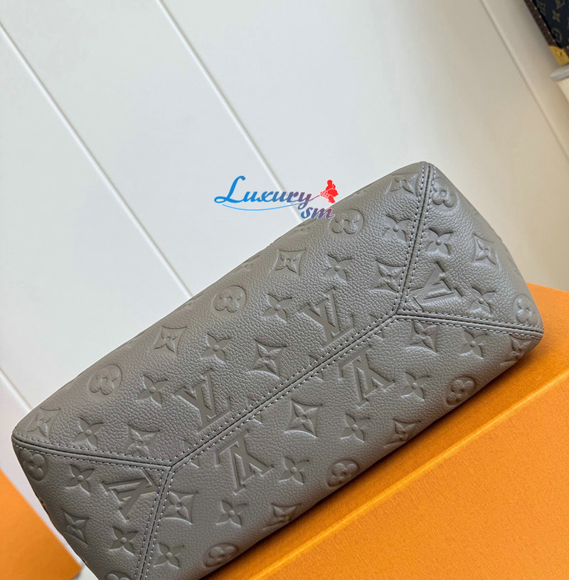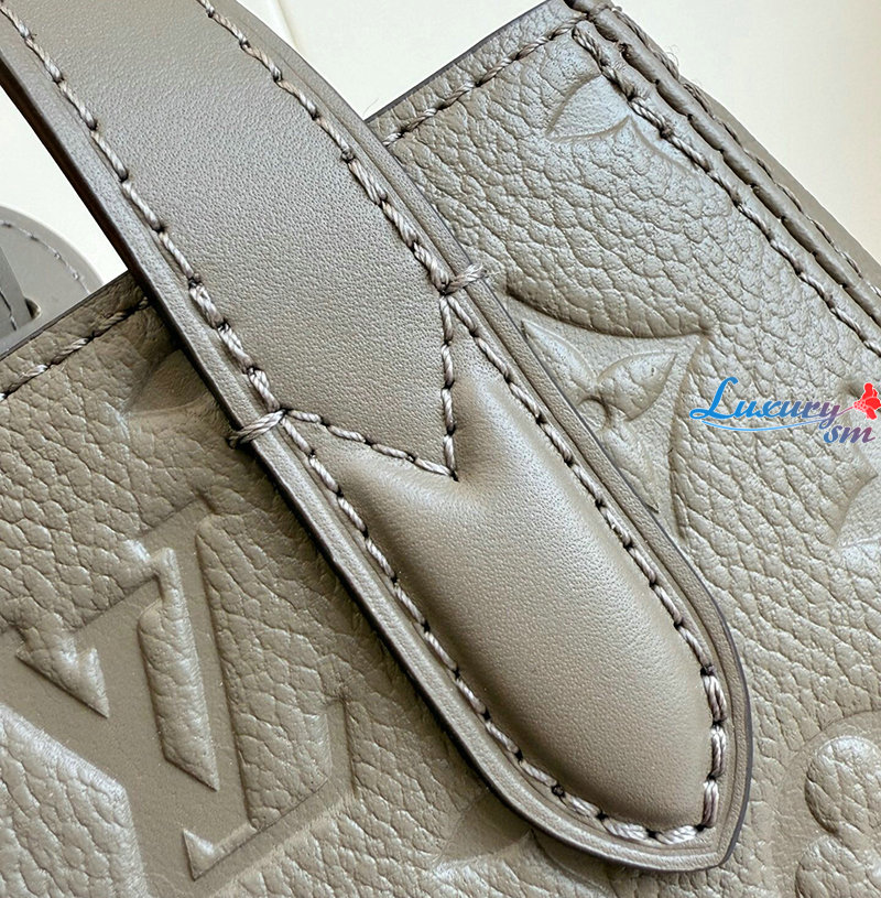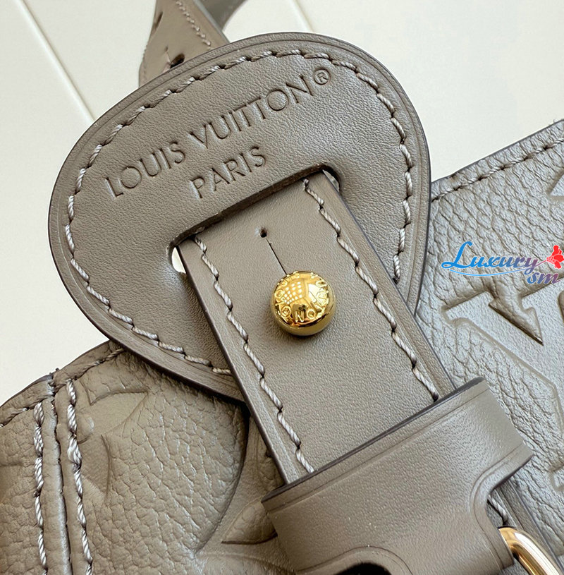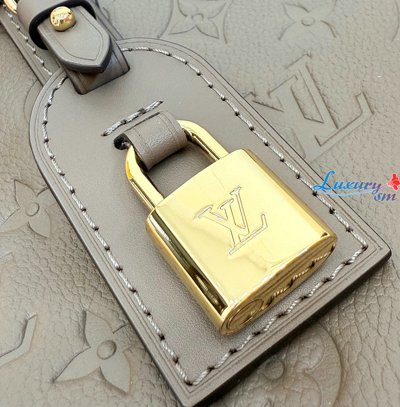 모크 색조의 모노그램 앙프렝뜨 가죽 소재. 골드 색상의