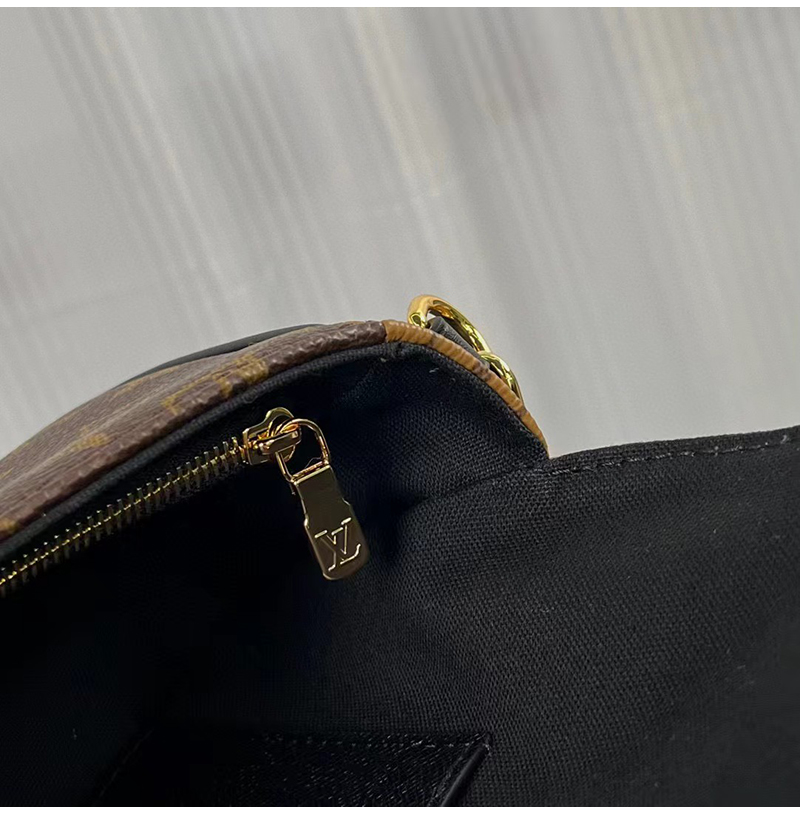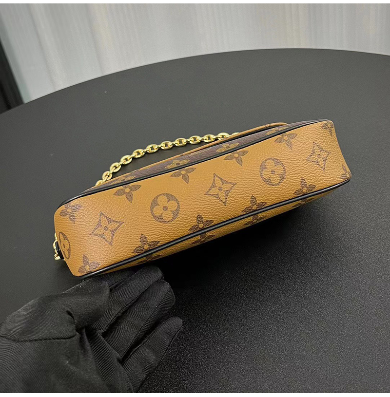 모노그램 리버스 캔버스 소재. 골드 색상의 탈착형