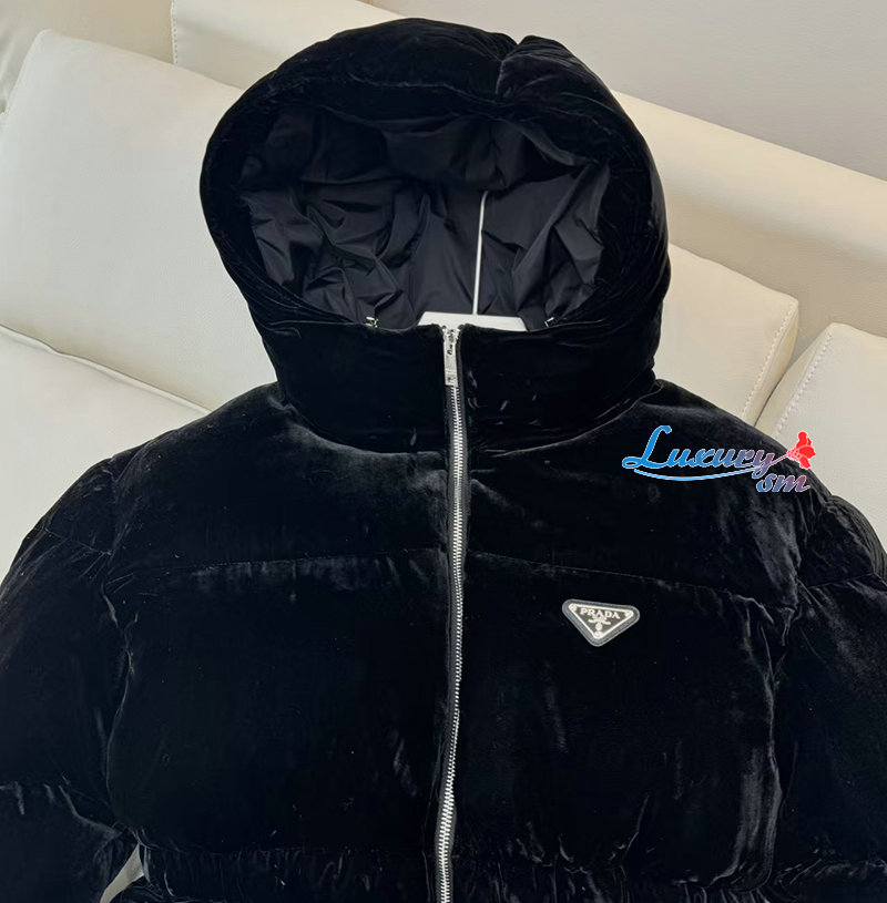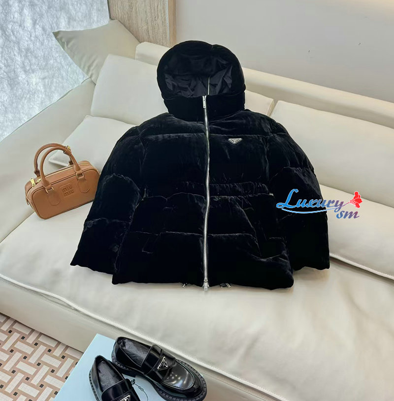 PRADA-1E1117707 프라다 삼각로고 벨벳 다운 패딩 여성용