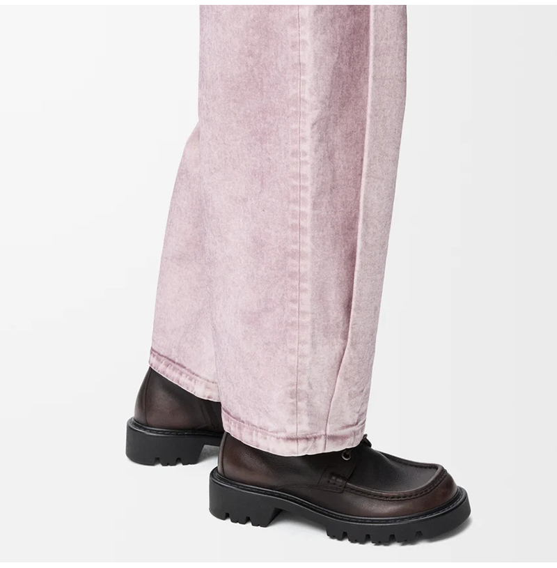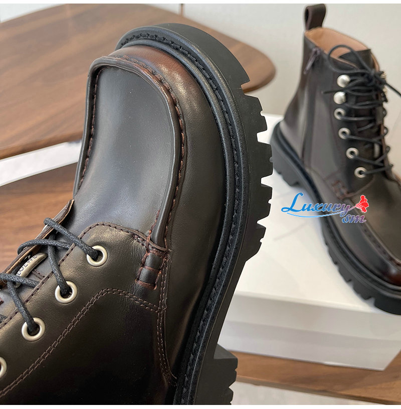 기모 송아지 가죽을 채용한 레이스 업 부츠.