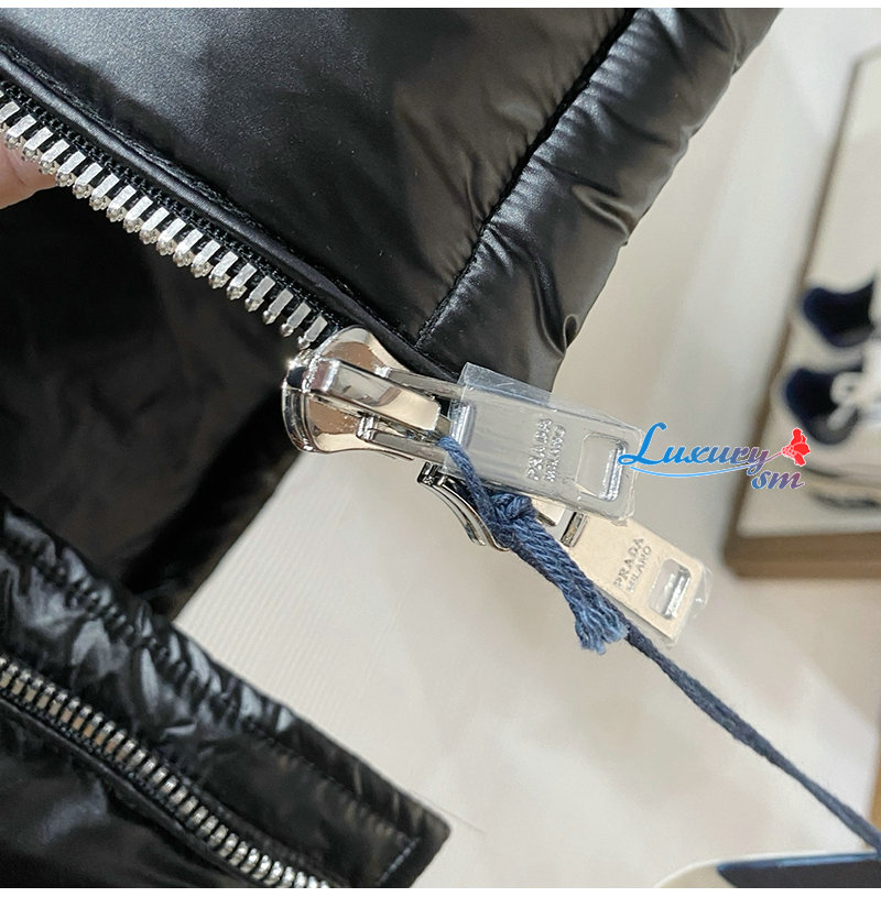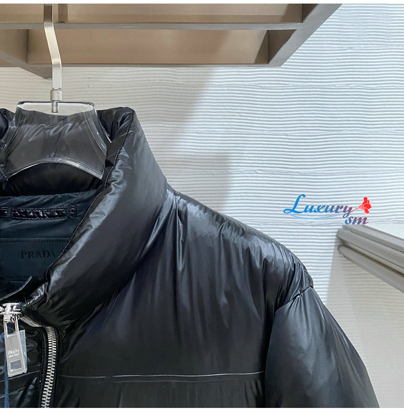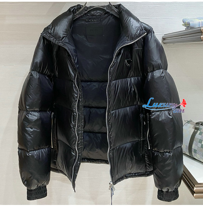 PRADA-1E9C38 PRADA 2025 F/W 신형 자카드 나일론 패딩 / 금속 소형 로고 패딩 블랙 남성용