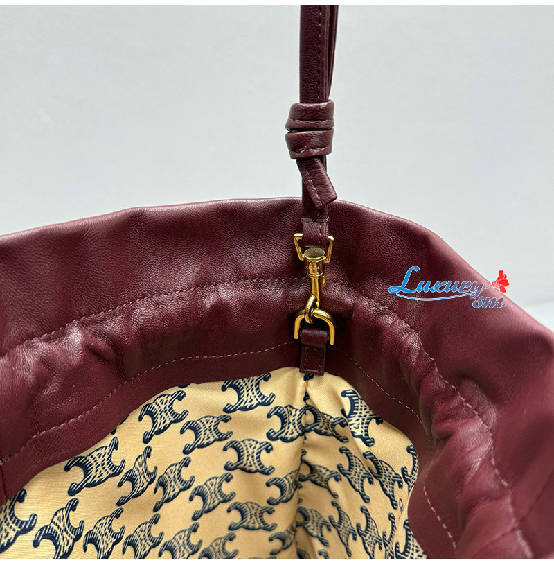 높은 식별도를 자랑합니다. 드로스트링 버킷백 디자인으로